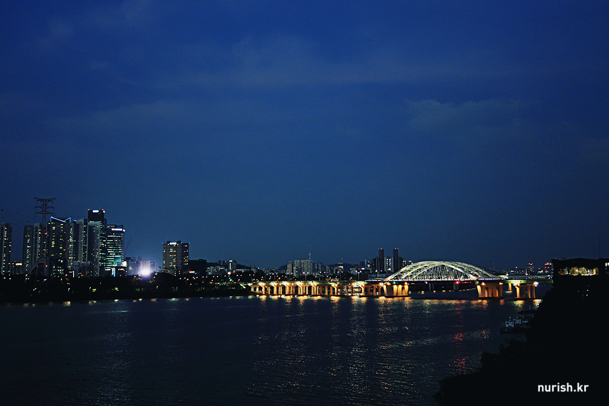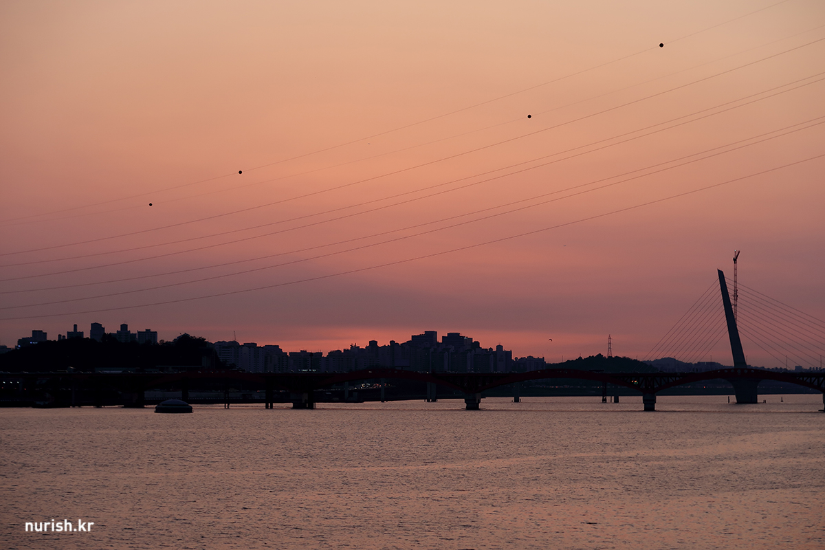 번개는 일찍 끝났고, 배가 너무 불러서 다리를 건넜다. 하늘도 아주 예쁘다.
