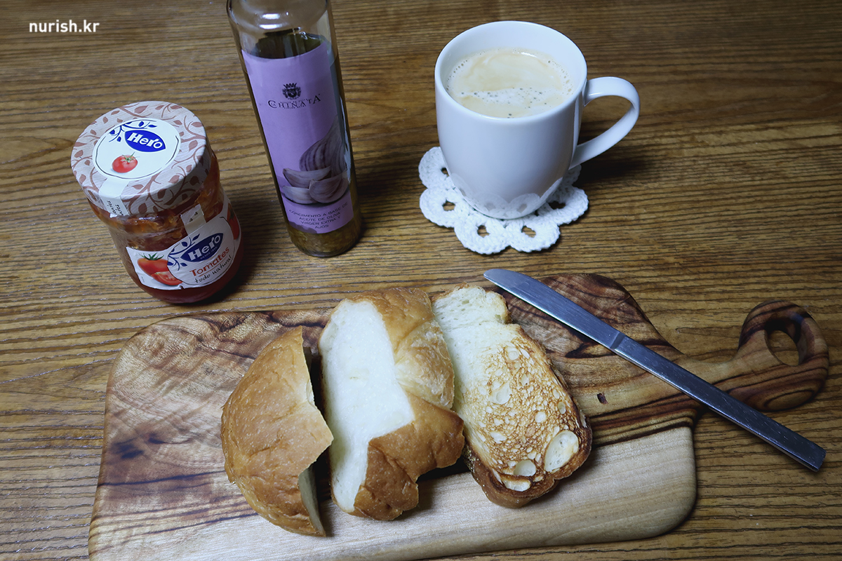 요즘 푹 빠져 있는 파바 효모빵과 마늘맛 올리브 오일, 토마토 잼