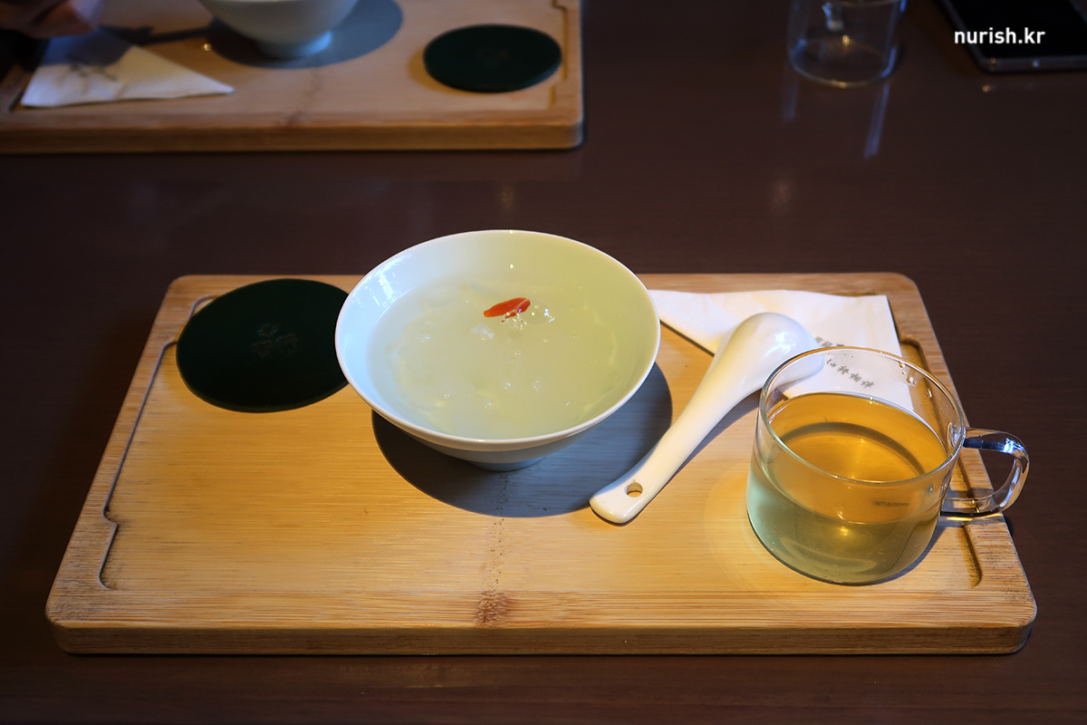 마사지 받고 나서 먹은 정체를 알 수 없는 국물과 따뜻한 차