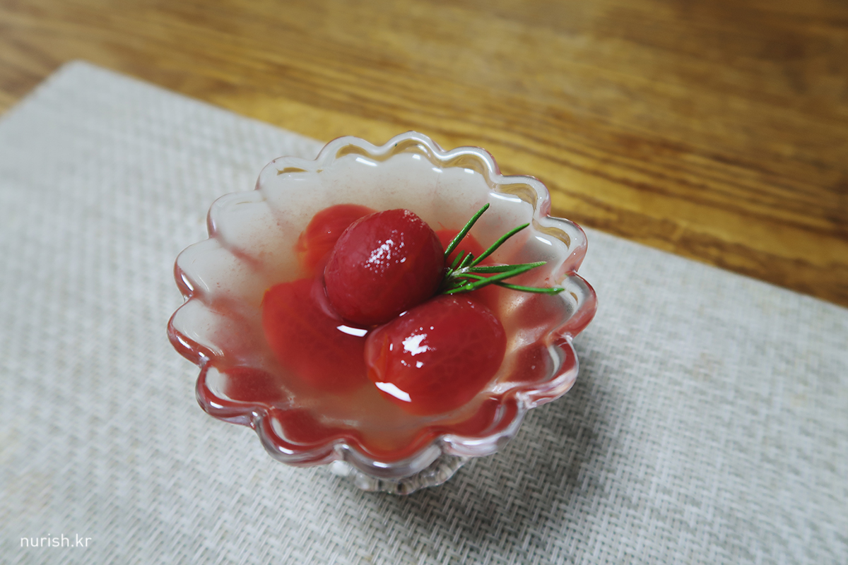 어제 배탈 나는 바람에 속을 달래주기 위한 매실토마토 한 사발