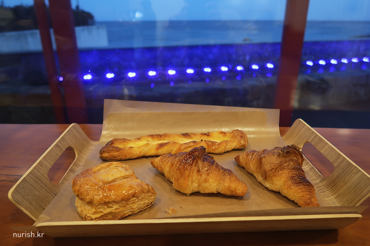 몸을 녹이러 카페에 들어갔는데 마침 빵이 50% 할인 중(17:30-)이라 몇 개 골랐다.