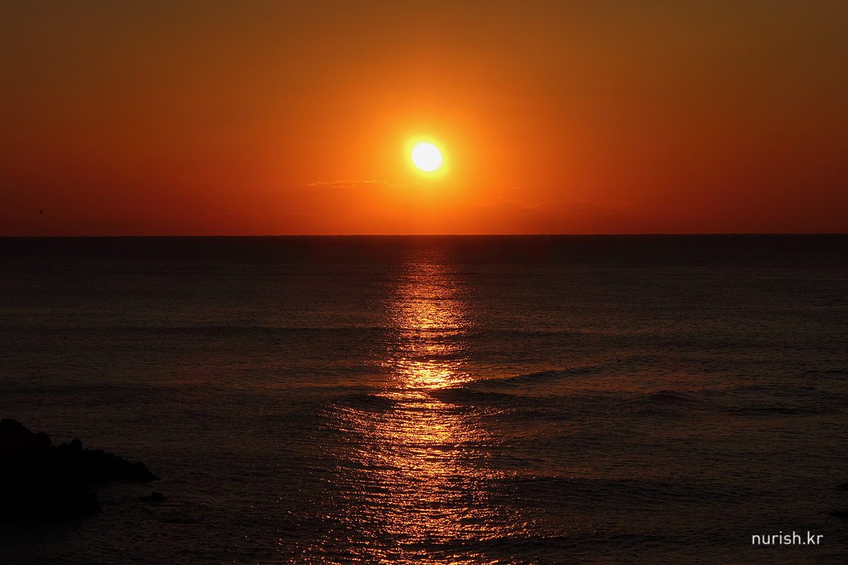 사람 적을 시간에 해수사우나를 하면 좋겠다 싶어서 오픈 시간에 맞춰 나왔는데 해가 뜨고 있었다.