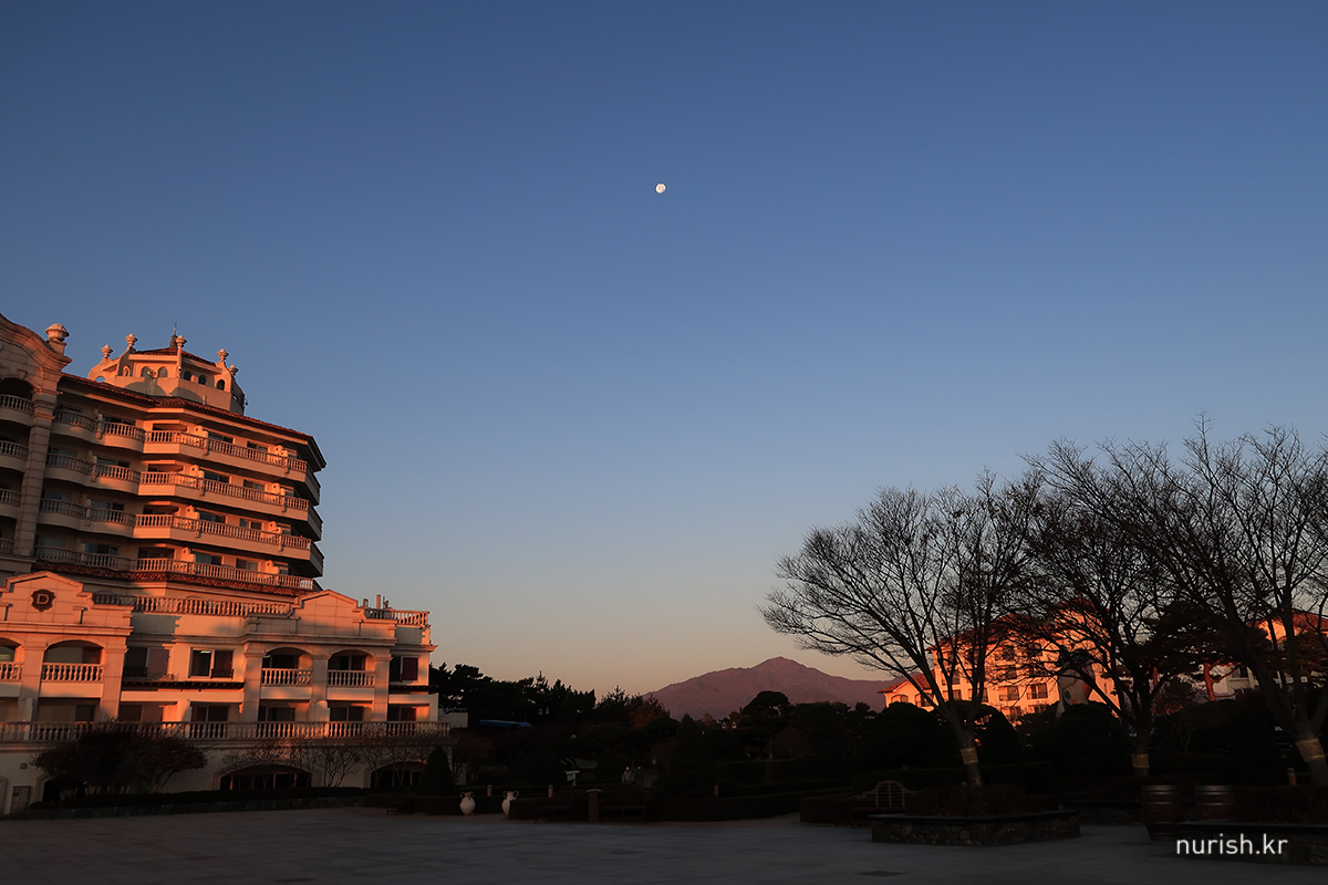 사람 적을 시간에 해수사우나를 하면 좋겠다 싶어서 오픈 시간에 맞춰 나왔는데 해가 뜨고 있었다.