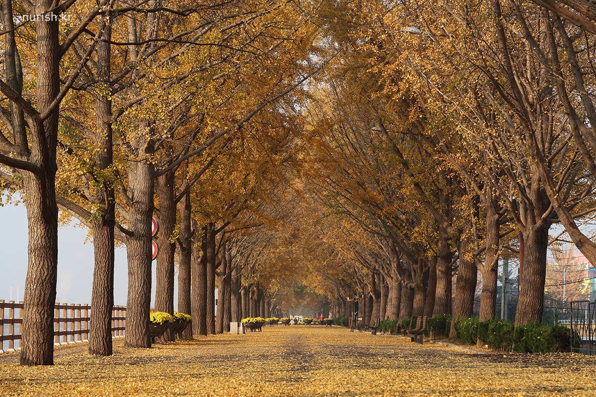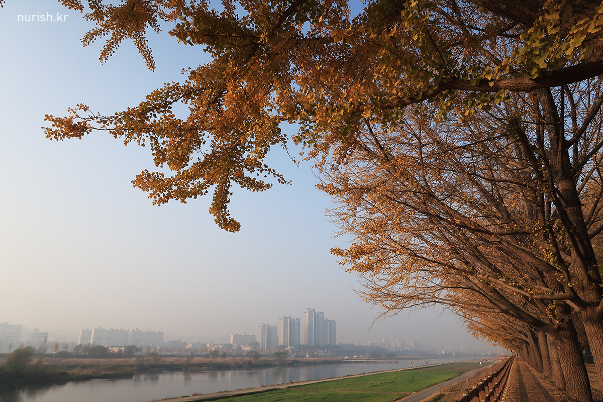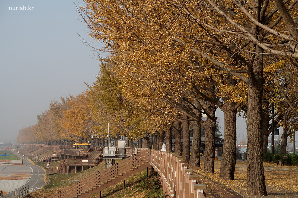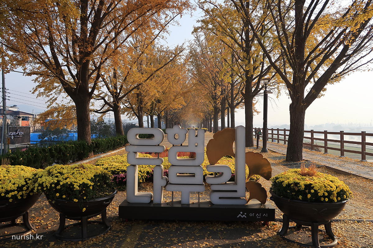지중해마을에서 10분 정도 차 타고 가면 나오는 아산 곡교천 은행나무길.