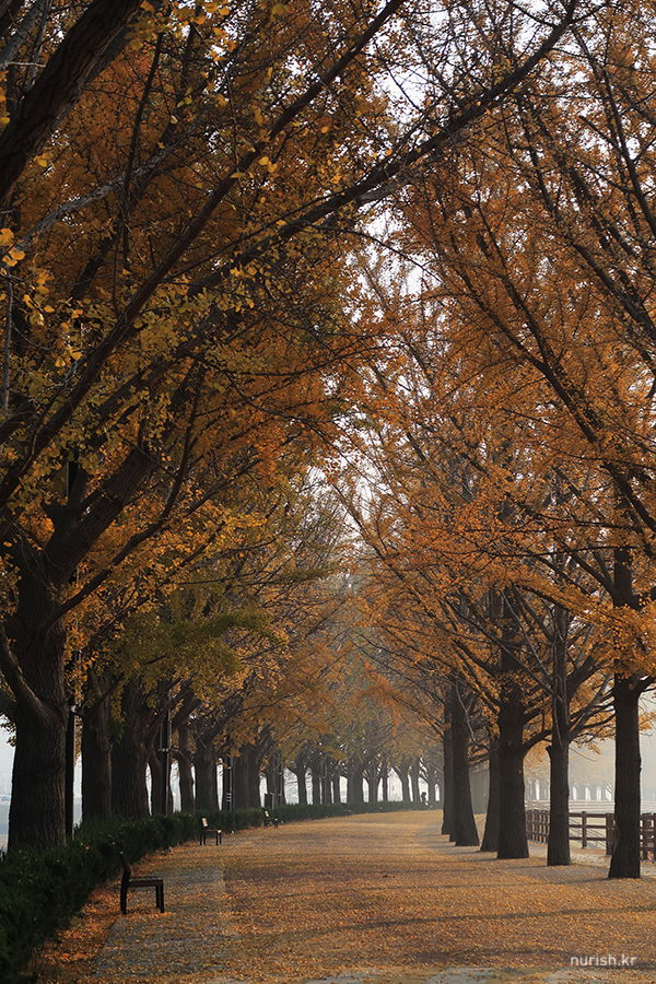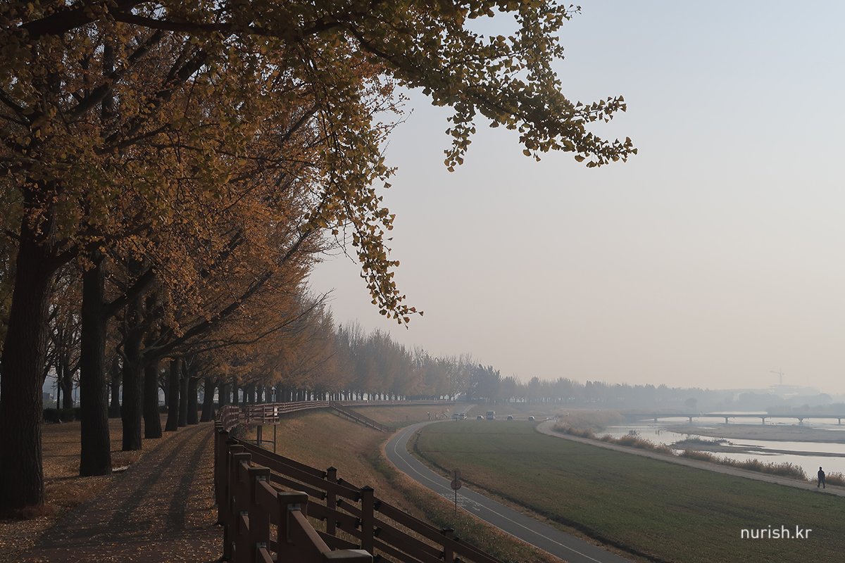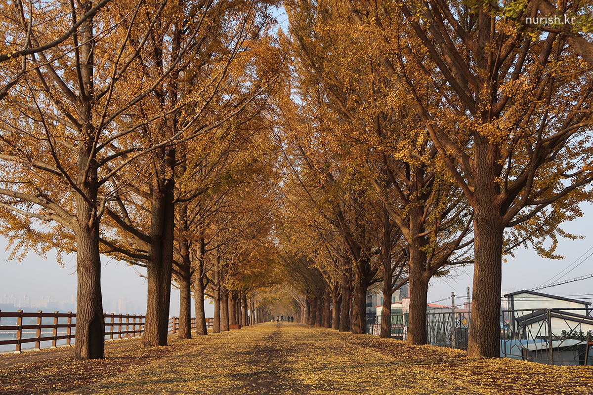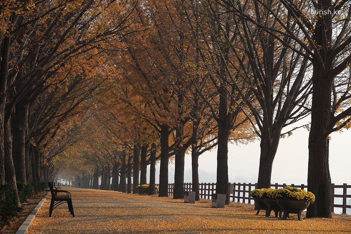 지중해마을에서 10분 정도 차 타고 가면 나오는 아산 곡교천 은행나무길.