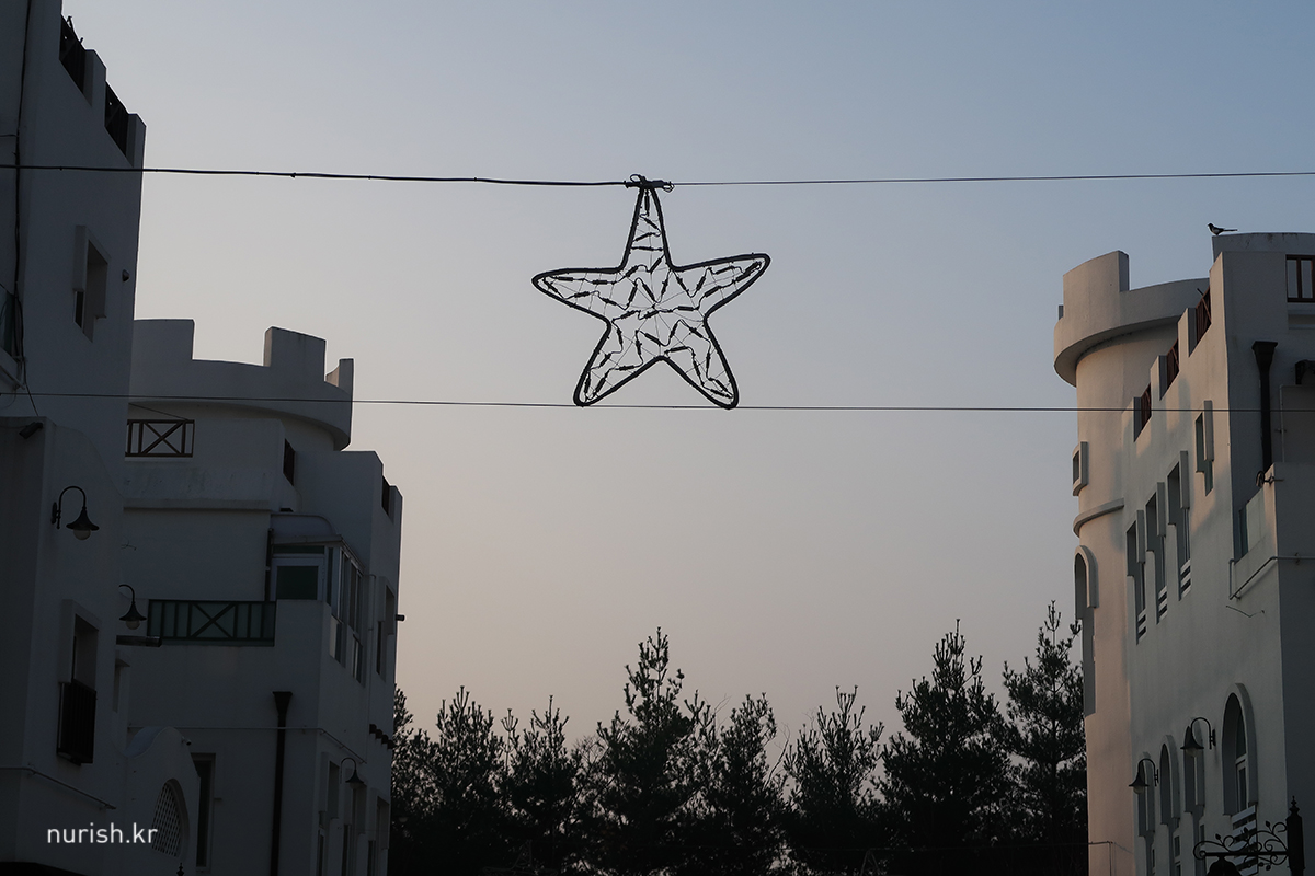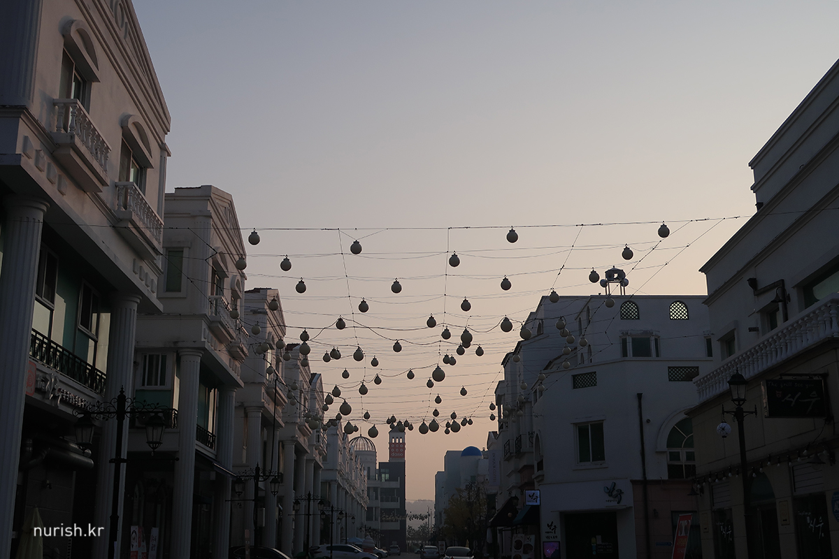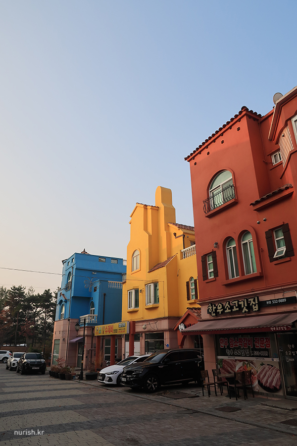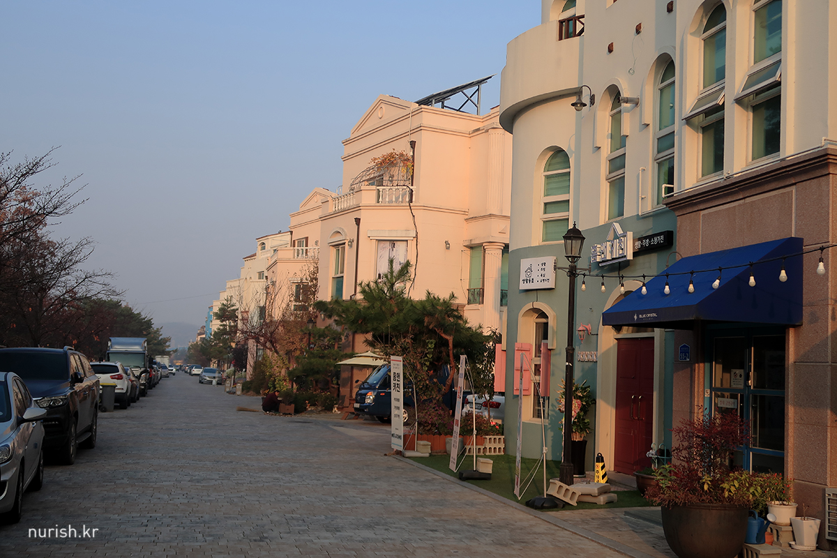 처음 지중해마을까지 왔는데 안 둘러볼 수는 없어서 한 바퀴 돌았다. 해가 뜨고 있다. 귀엽고 아기자기한 건물이 아주 많았다. 해 질 녘에 오면 조명 같은 게 켜져서 더 예쁠 것 같다.