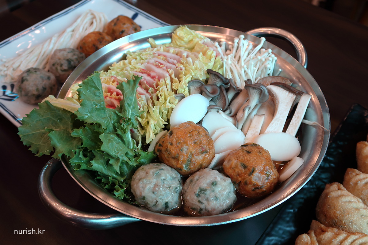 점심 메뉴는 만두샤브전골 2인분이랑 군만두. 얼큰만두샤브전골을 주문할까 하다가 그냥 만두샤브전골을 주문했는데 잘한 거 같다. 이 집 겉절이 김치도 엄청 맵고, 김치 만두도 무진장 맵다.