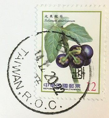 2012년 1월 12일 발행된 Berries 시리즈의 미국까마중(Solanum americanum) 우표.
