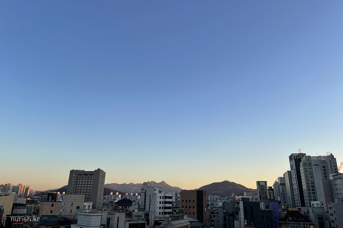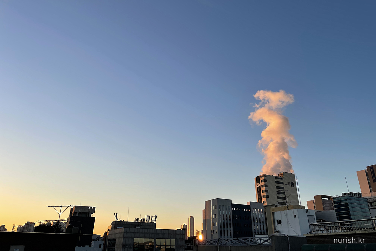 추운 건 너무 싫은데, 기온이 뚝 떨어지면 하늘이 정말 깨끗하고 예쁘다. 오늘도 출근하자마자 옥상에서 찰칵.