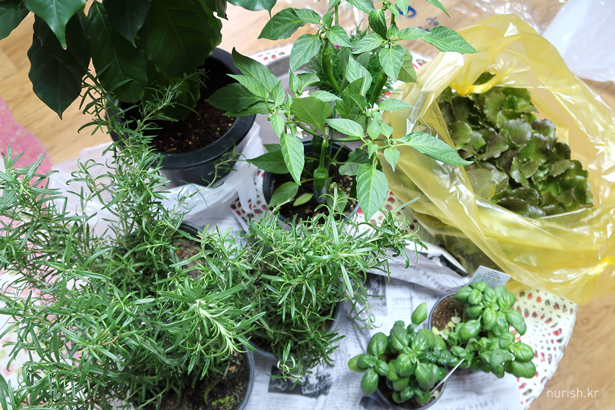 커피 나무, 고추, 상추, 로즈마리, 스위트바질