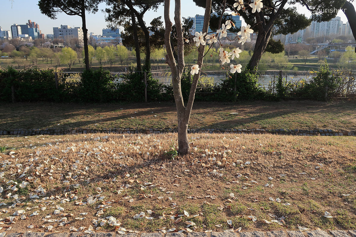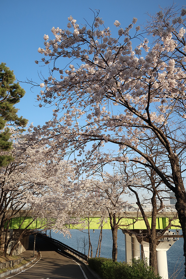 양천구 쪽 벚꽃길은 건너편에 비해 벚나무들이 아직 작다.