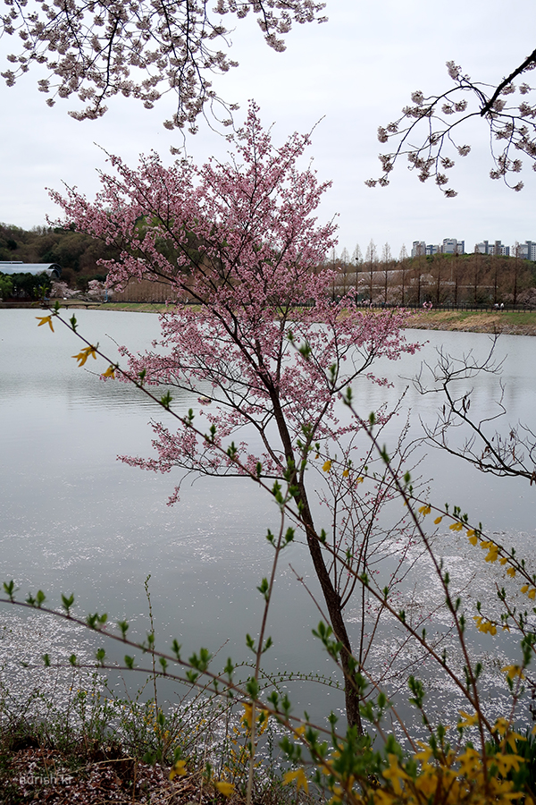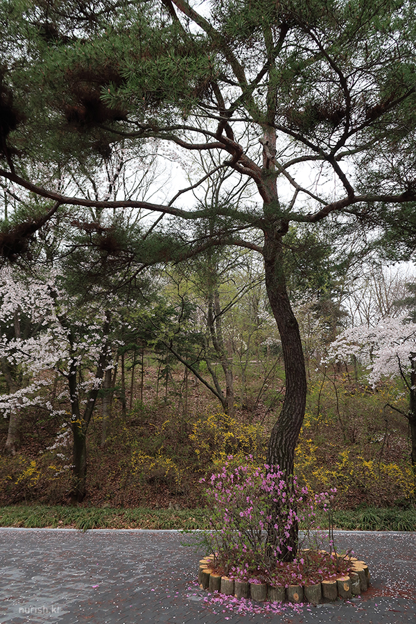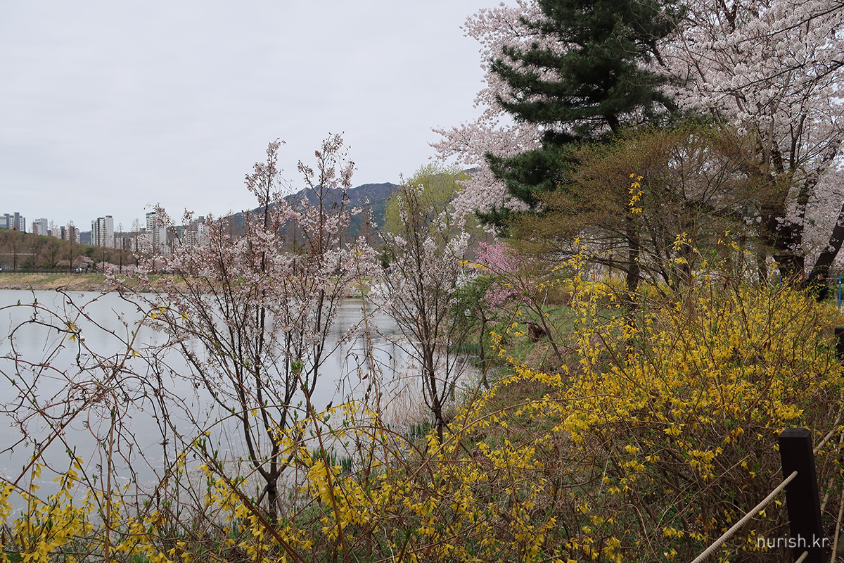 아침에 비가 그치는 것 같아서 저수지 둘레길 한 바퀴 걸으러 드라이브했다. 서울대공원에 오면 과천저수지 둘레길을 따라 쭉 산책할 수 있다. 어제 하루종일 비가 내린 탓인지 꽃잎이 잔뜩 떨어졌다. 찰나라 아쉬운 봄.