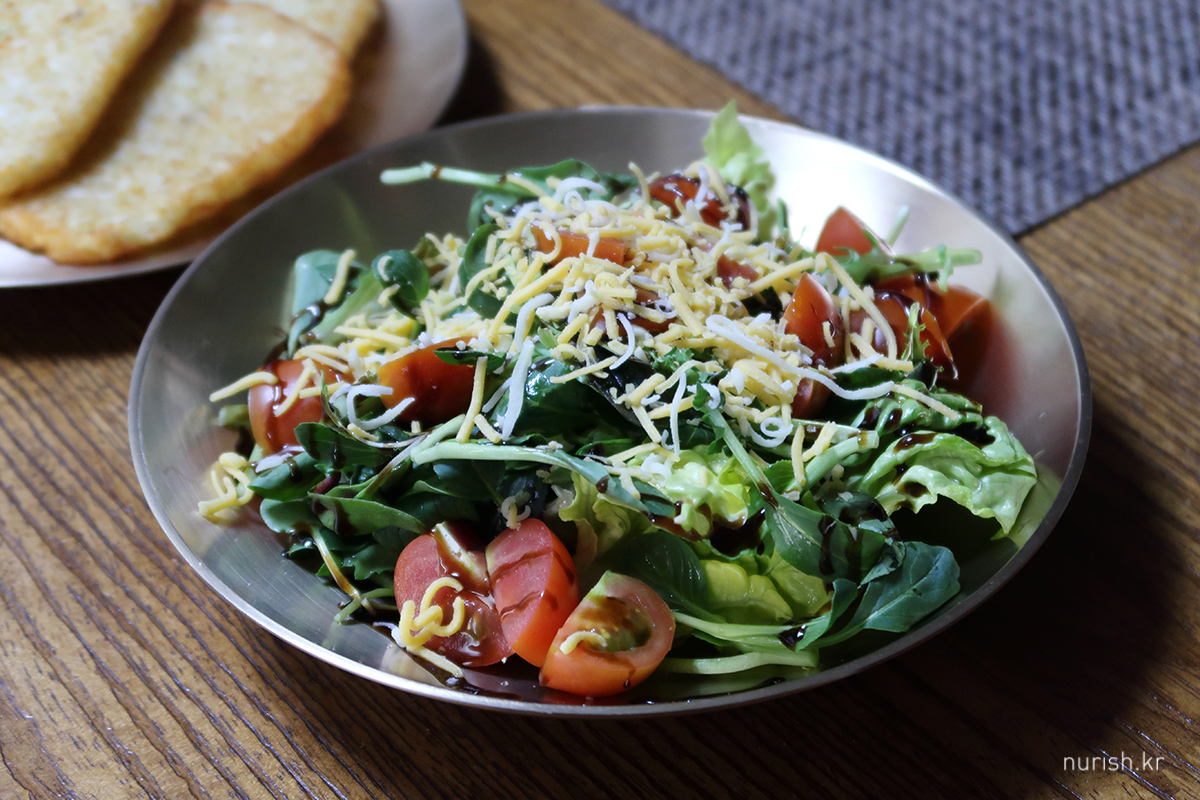 저녁밥은 과천에서 집에 오는 길에 광명에서 들른 코스트코에서 산 해시브라운과 채소들