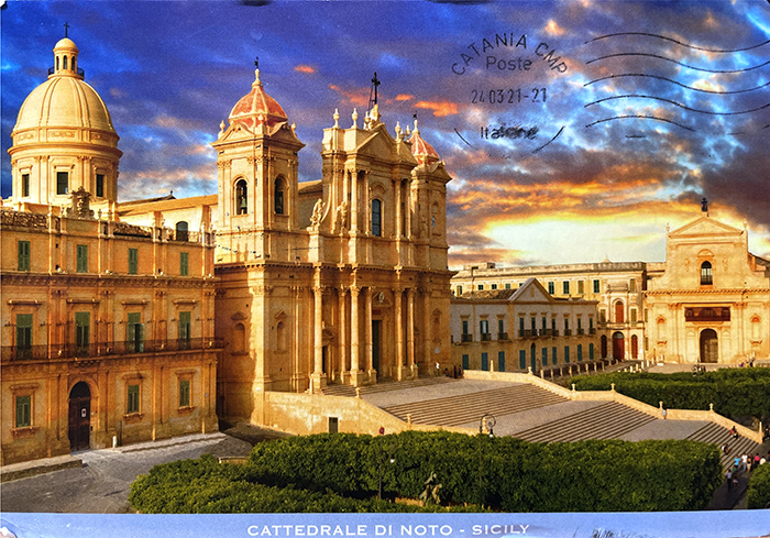 이탈리아 시칠리아 섬의 남동쪽에 있는 도시 노토에서 온 엽서. 바로크 건축을 대표하는 건물 중 하나인 웅장한 노토대성당 엽서가 왔다. 예쁘다. 언제쯤 가보려나.