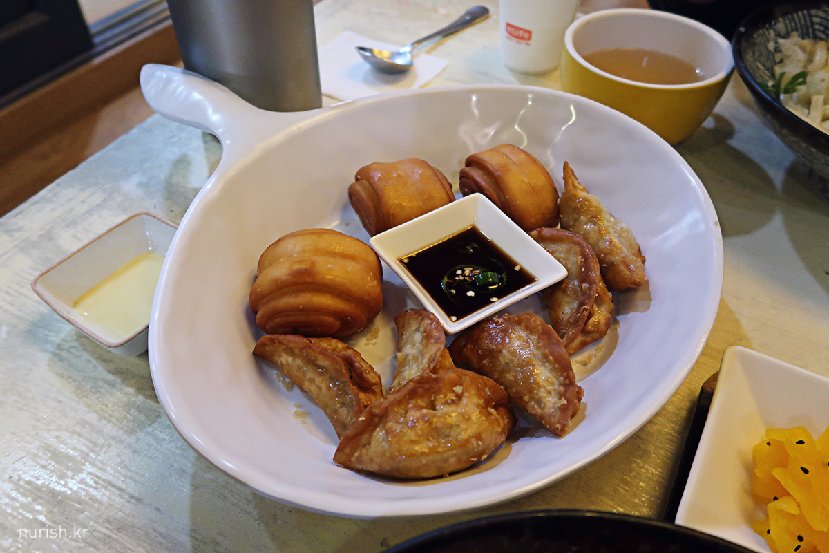 이 집에서 안 시킬 수 없는 사이드 메뉴, 군만두와 꽃빵. 꽃빵은 연유 찍어 먹고, 군만두는 고추간장 찍어 먹으니 딱 좋은데 우동이 너무 많아서 아쉽게 하나씩만 입에 넣고 나머지는 포장해 왔다. 집에서 간단히 저녁으로 먹을 때 에어프라이기에 데우니까 그럭저럭 괜찮더라.