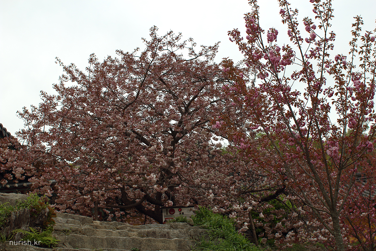 차에 올라타자마자 비가 한두 방울씩 떨어지기 시작했다. 다음에 날이 좋을 때는 아래 주차장에 차를 대고 돌길 따라 걸어 올라와도 좋겠다는 생각을 하며, 청벚꽃과 왕벚꽃을 뒤로하고 아쉽게 운전대를 잡는다.