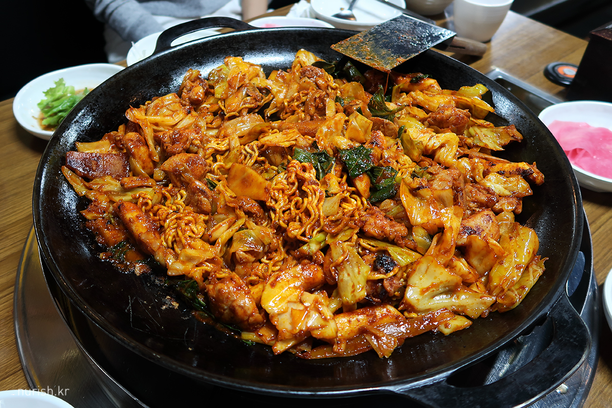 이전 기념 방문, 야채닭갈비 3인분과 라면 사리. 오랜만에 먹어도 여전히 맛있네