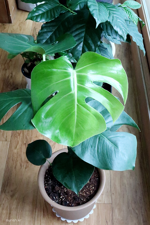 몬스테라에 새 잎이 났는데 아주 싱그럽고 튼튼해 보인다. 며칠 전까지도 못 봤는데 갑자기 뿅! 이파리에서 강한 생명력이 느껴지는 것이 무척 신기하고 아름답다.