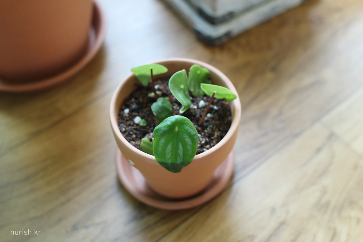 당근에서 데리고 온 수박이도 요거트 통을 벗어나 예쁜 토분에 안착. 쑥쑥 잘 커주기를.