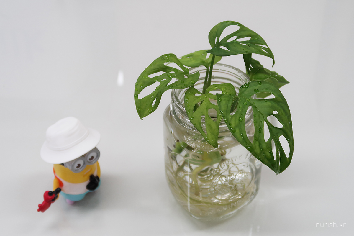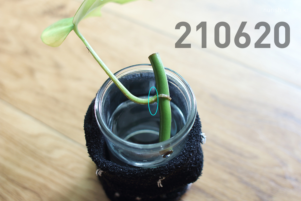 여전히 뿌리 소식 없는 '라피도포라 테트라스퍼마(동글이 히메몬스테라)'. 진득하게 내버려 두려고 하는데 그게 안 되네. 맨날 들여다 보면서 조바심만 낸다. 휴ㅠㅠㅠ 지난주에 화원 갔다가 사장님한테 들인지 일주일 된 히메몬 삽수가 뿌리를 안 내려요ㅠㅠ 했더니 그럴 거면 콩나물을 기르지 왜 히메몬을 키우냐며 ㅋㅋㅋㅋㅋㅋㅋ 히메몬은 100프로 뿌리 내릴 테니 걱정하지 말라고 해 주셨다.