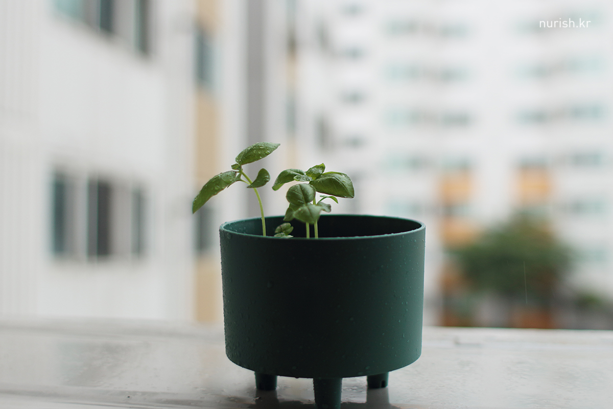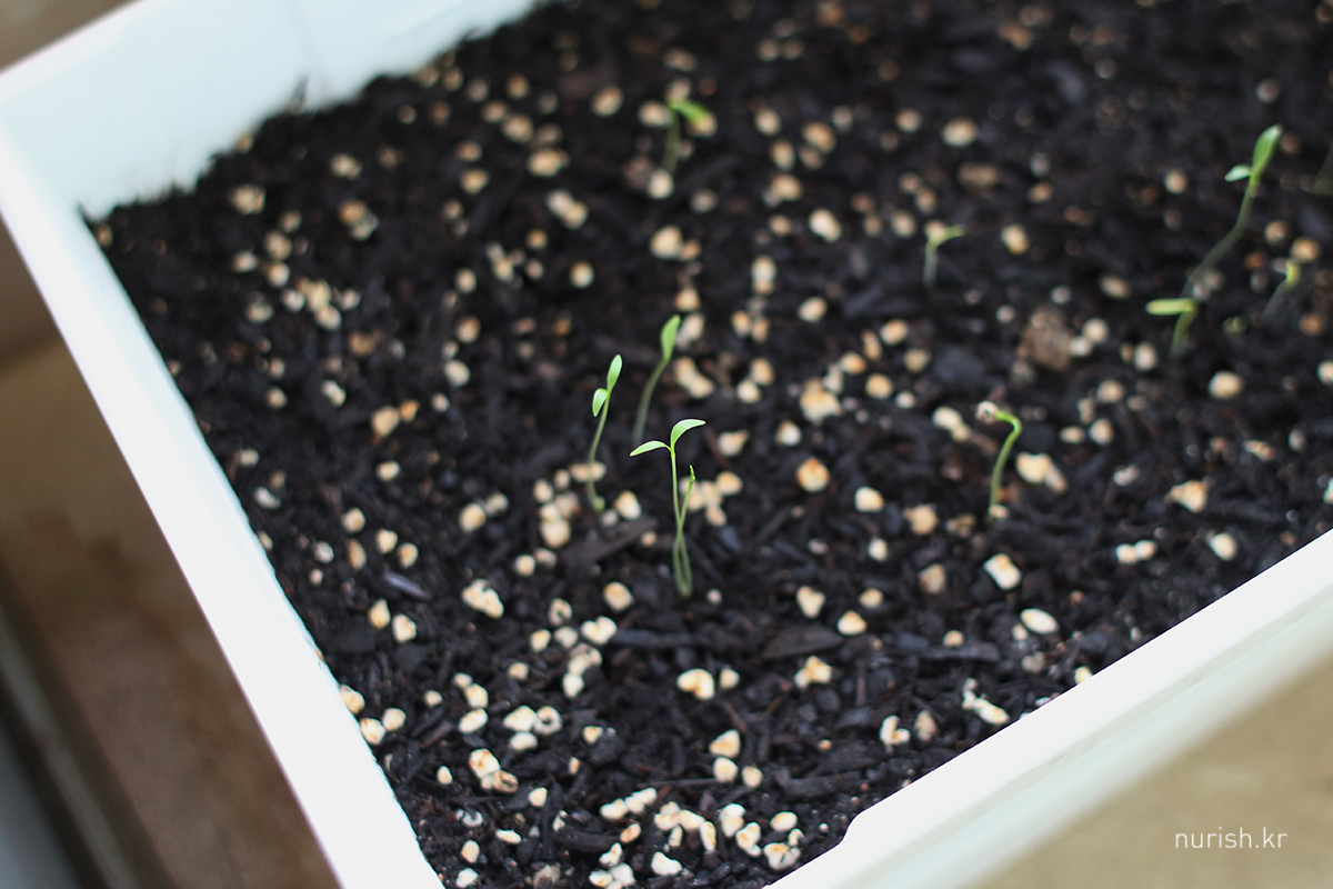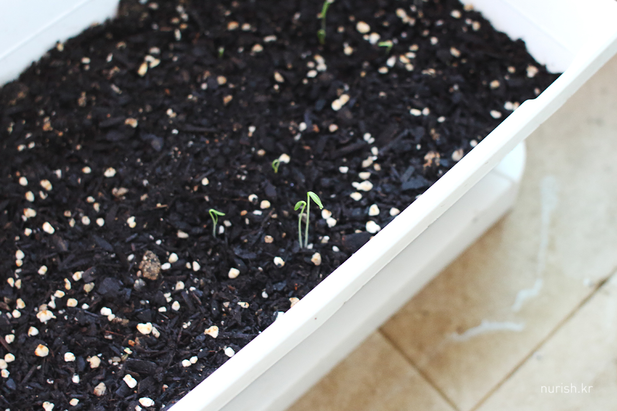 씨 뿌려 놓은 고수 화분에 새싹이 났다!