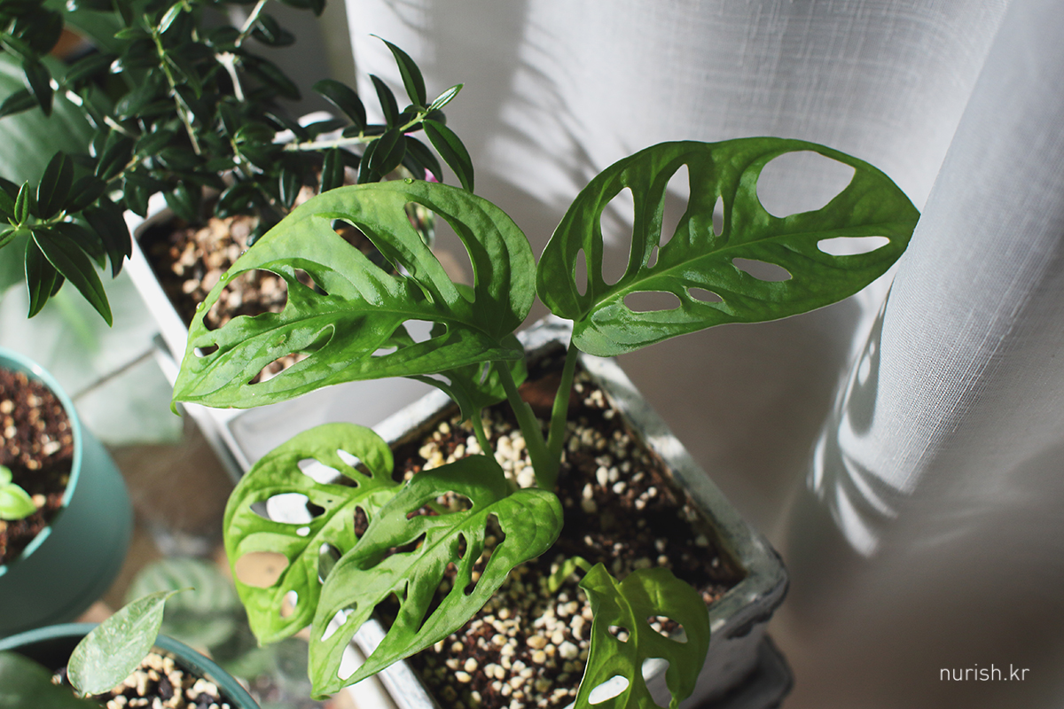 몬스테라 아단소니. 고급진 비단 느낌(?) 잎사귀 ㅋㅋㅋ