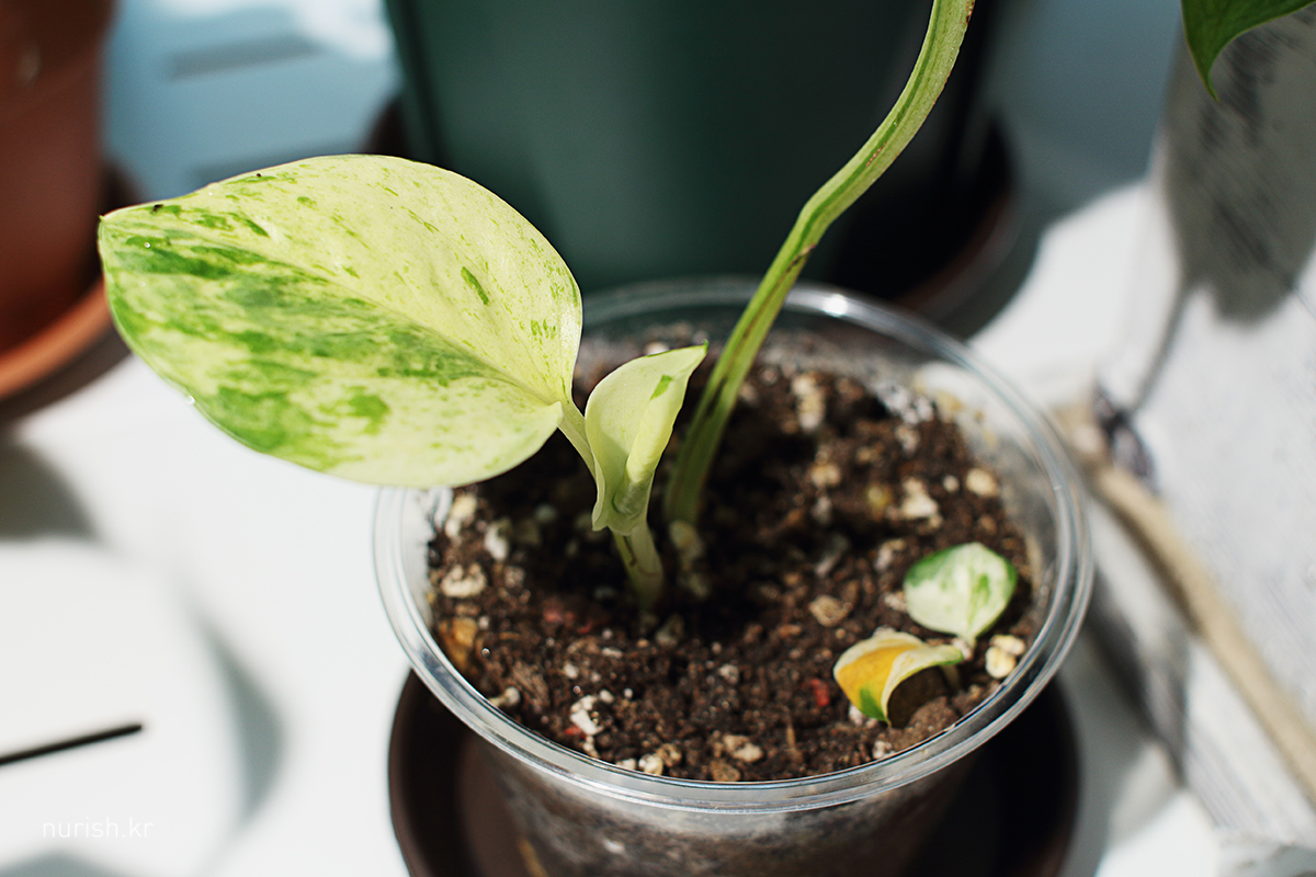 그리고 빨대로 감싸준 이튿날 뿌리가 쑥 자라면서 바로 새잎이 올라오기 시작했다. ㅠㅠㅠ 감동ㅠㅠㅠ 그동안 뿌리 내느라 새잎 얼음이었던 게 맞나 보다. ㅠㅠㅠㅠㅠ