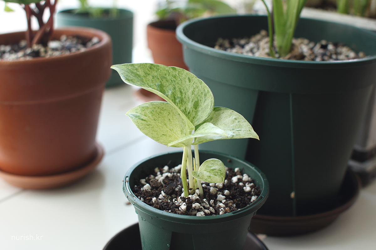 이 녀석도 분갈이 완료. 노란색으로 변해 버린 작은 잎은 꺼내 보니 줄기가 완전히 물렀더라. ㅠㅠ 저 하나 남은 녀석은 잘 살아남아 주기를. ㅠㅠ