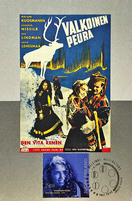 핀란드 영화감독 에릭 블룸버그(Erik Blomberg)가 연출한 하얀 순록/화이트 레인디어(Valkoinen Peura, 1952) 영화 엽서. 서양 최초의 샤머니즘 영화라고 알려진 작품이라고 한다. 오, 내용 궁금해.