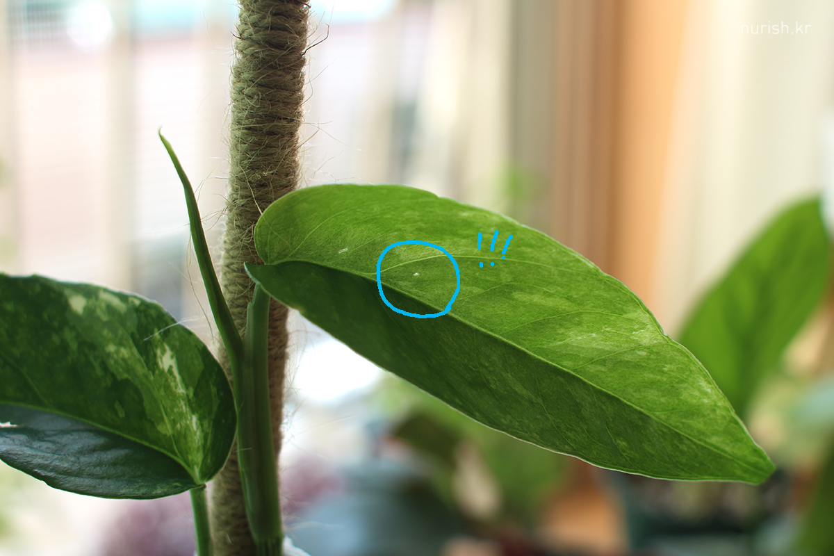 새잎 관찰하다가 찢어진 게 아닌 진짜 바늘 구멍 발견!