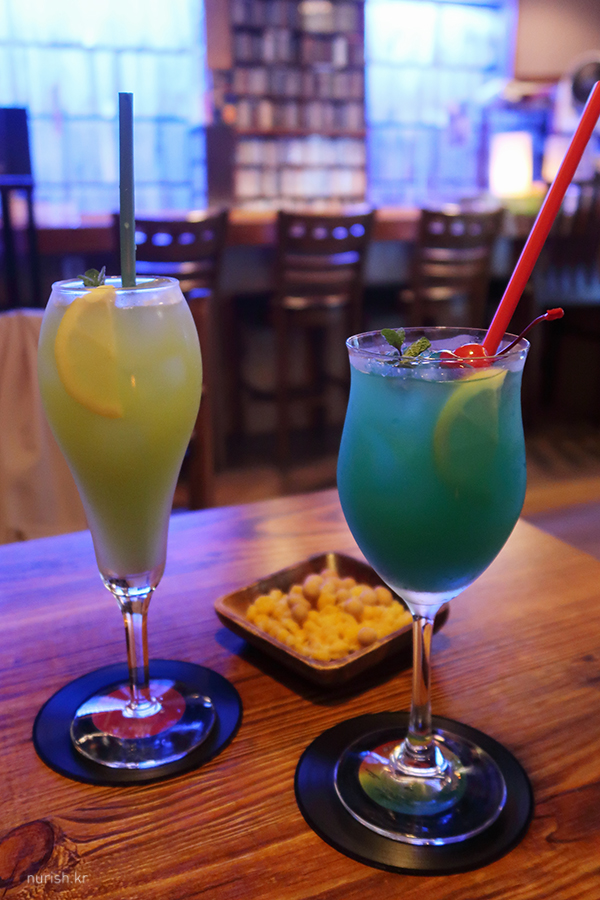 단골까지는 아니었어도 합정동에 있을 때 종종 갔는데, 몇 달 전 지나가다가 없어진 걸 보고 아쉬워했더니ㅠ 오늘 글쓰기 주제가 '술'이라 바에 가면 좋을 것 같아서 이것저것 검색하다가 크림바가 없어진 게 아니라 이사했다는 사실을 발견했다. 두리반 2층이라 심지어 회사에서 훨씬 가까워졌다. 다섯 시 넘어 퇴근하자마자 갔더니 이렇게 이른 손님 낯설다며 ㅋㅋㅋ MJ는 준벅, 나는 블루하와이.