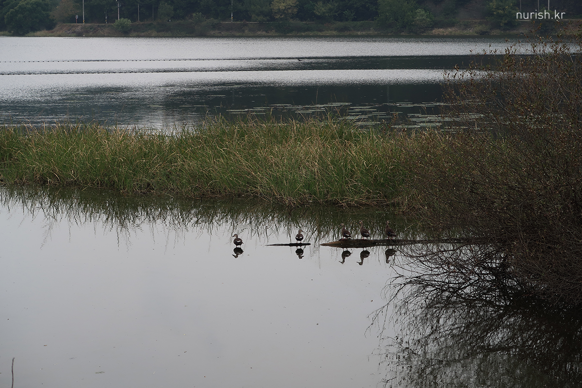쉬고 있던 오리 가족