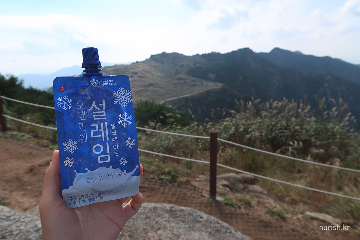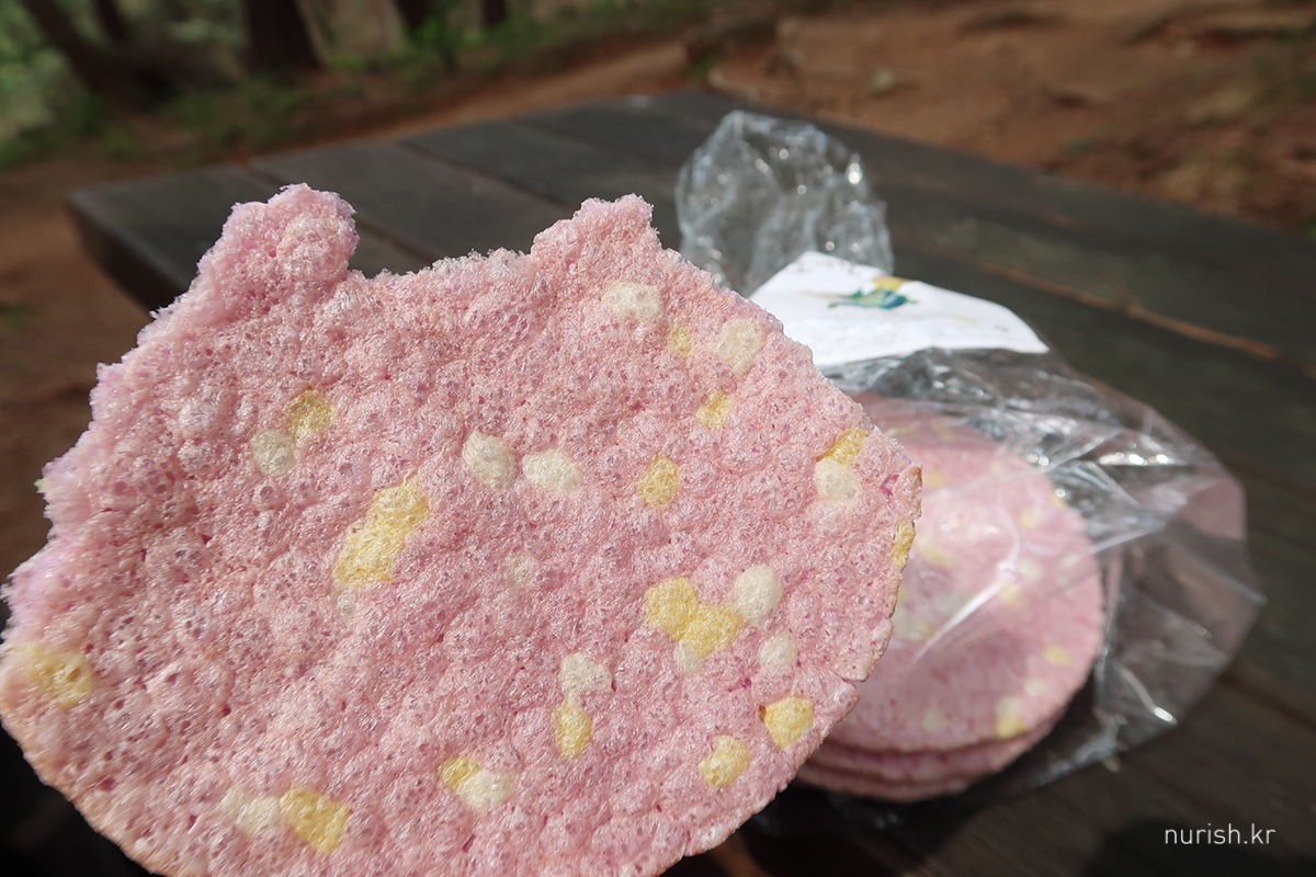 하산길, 간식은 전날 예천 용궁역에서 사온 뻥튀기 ㅋㅋ