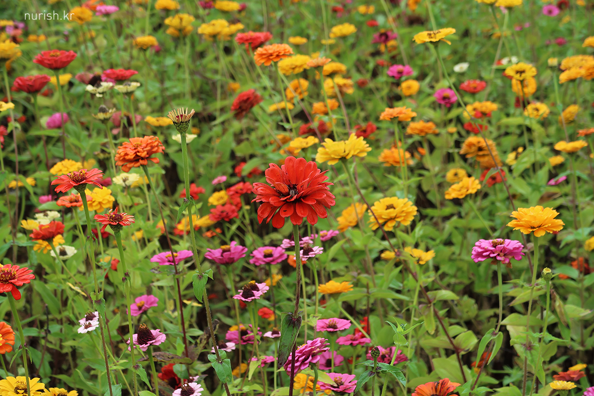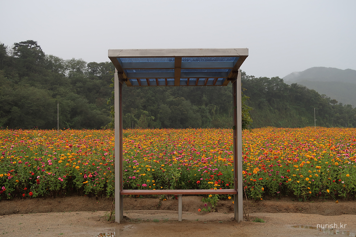 아침식사 하고 나오니 비가 그치는 듯하여서 급하게 체크아웃하고 백일홍을 또 보러 왔는데ㅋㅋㅋ 빗줄기는 다시 거세졌다.