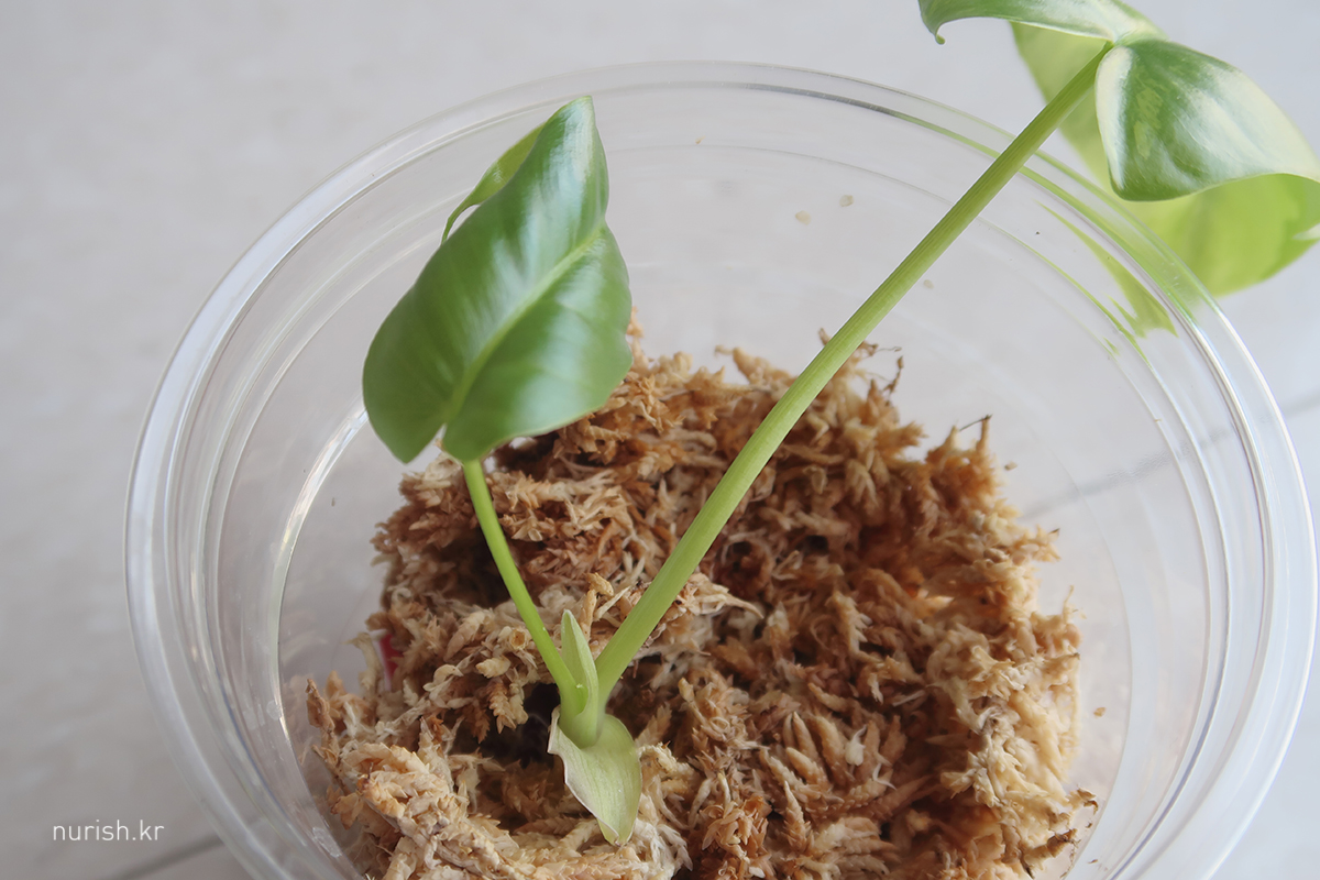 새순 올라오는 중. 순화 완료 후 펴진 잎에 무늬가 없어서 조금 불안하지만, 줄기를 보아하니 새로 올라오는 잎에는 무늬가 좀 묻어 있을 것 같다. 제발요ㅠㅠㅋㅋㅋ