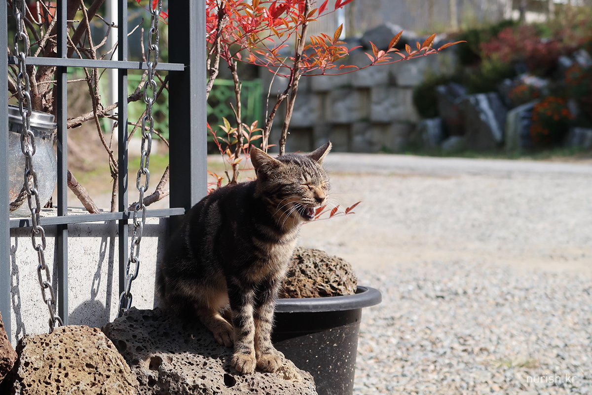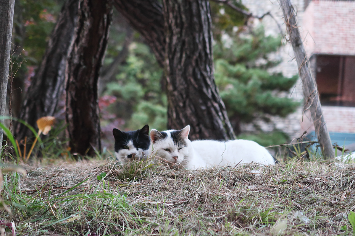 호텔 마당에 사는 똑닮은 고양이들