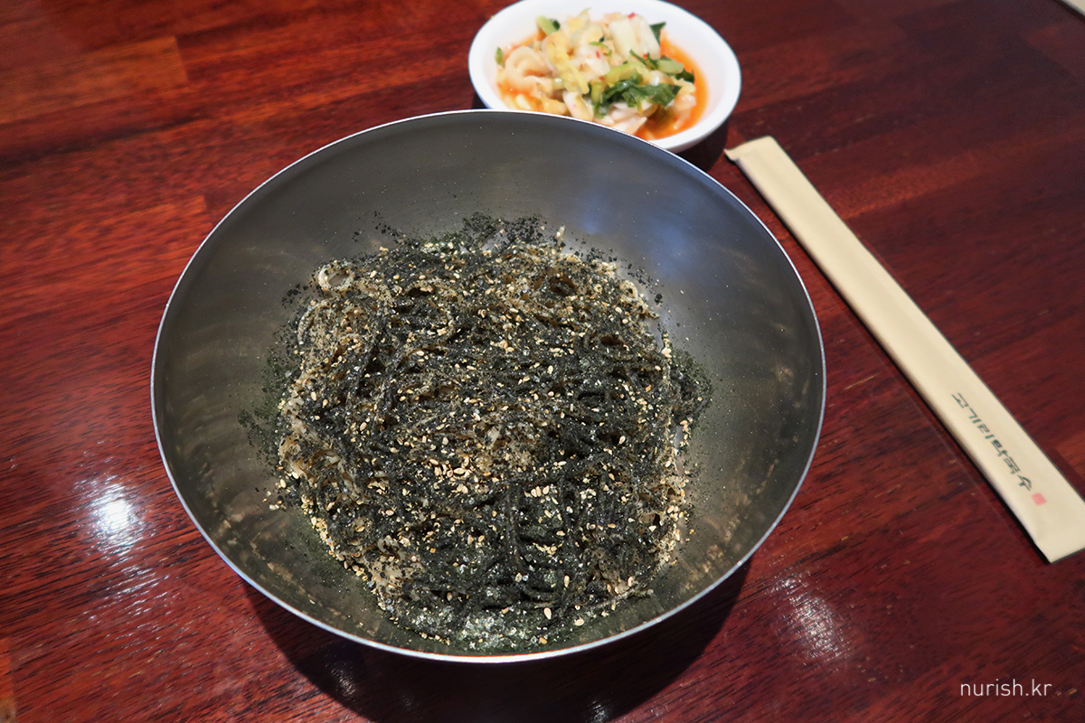 점심 겸 저녁 메뉴는 고기리막국수의 들기름막국수랑 비빔막국수랑 수육!