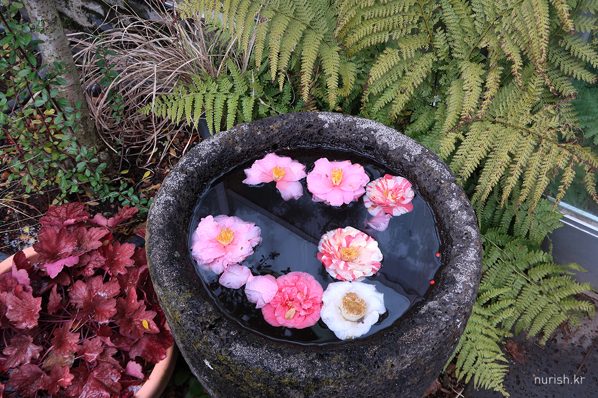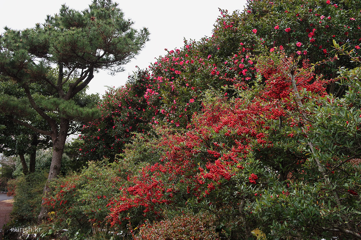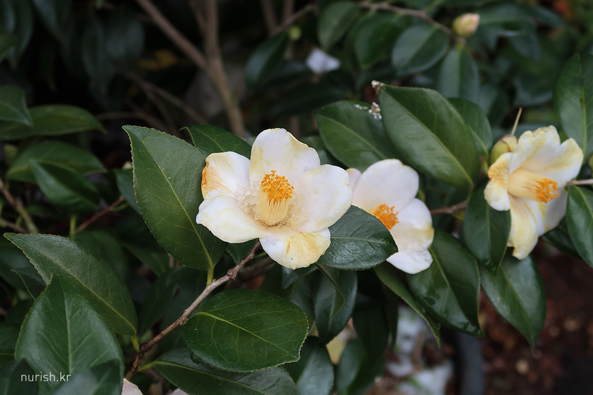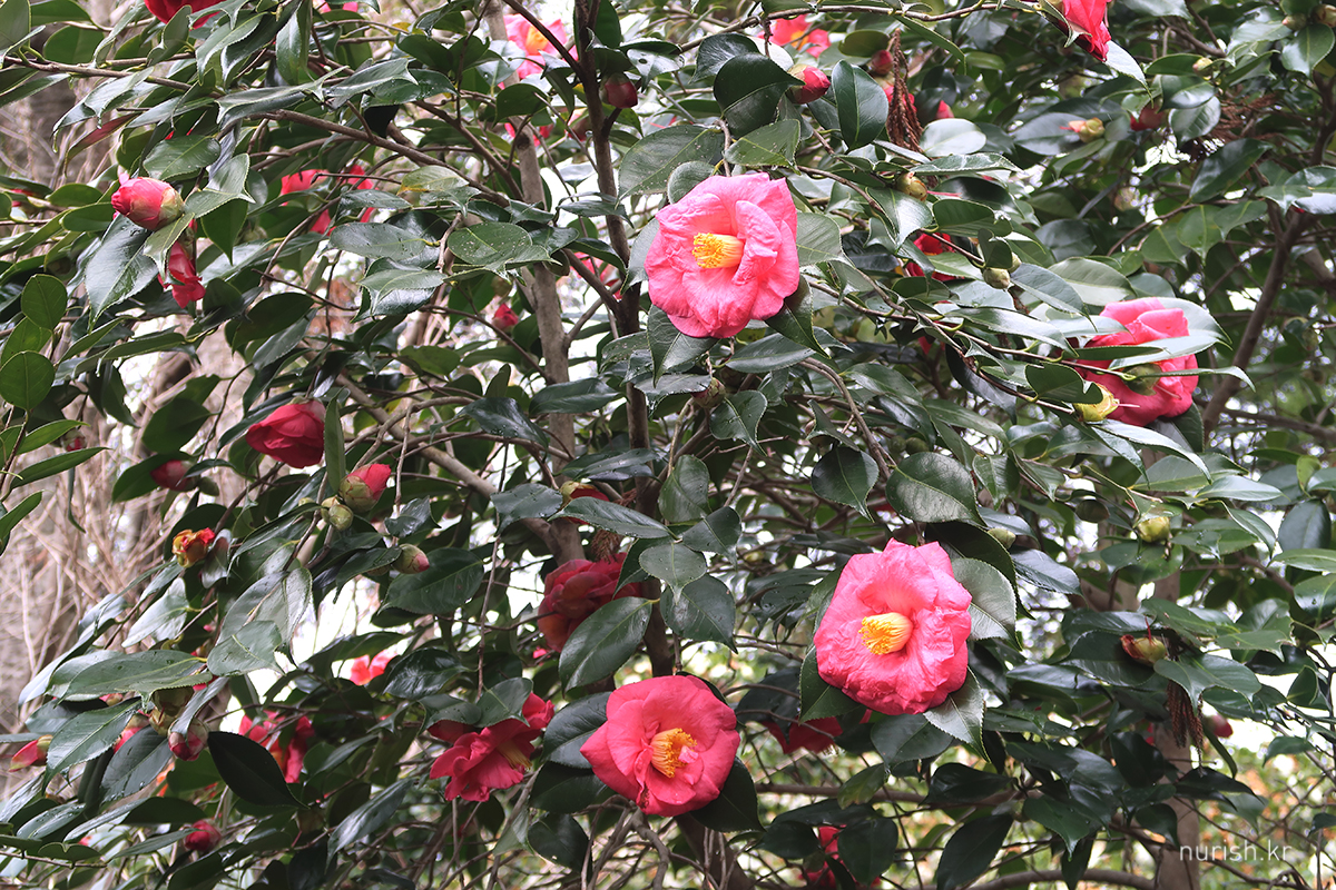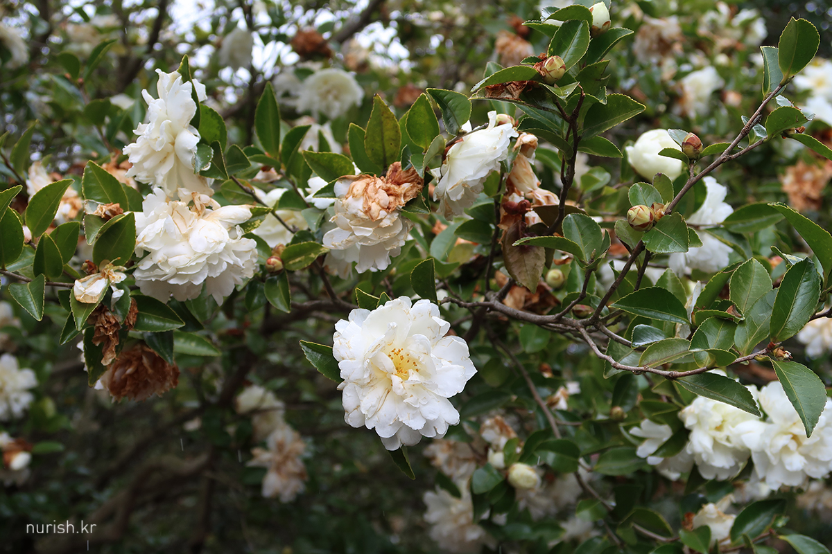 어제처럼 눈보라가 몰아치진 않아서 카멜리아힐에 왔다. 눈은 여전히 내리는 중.
