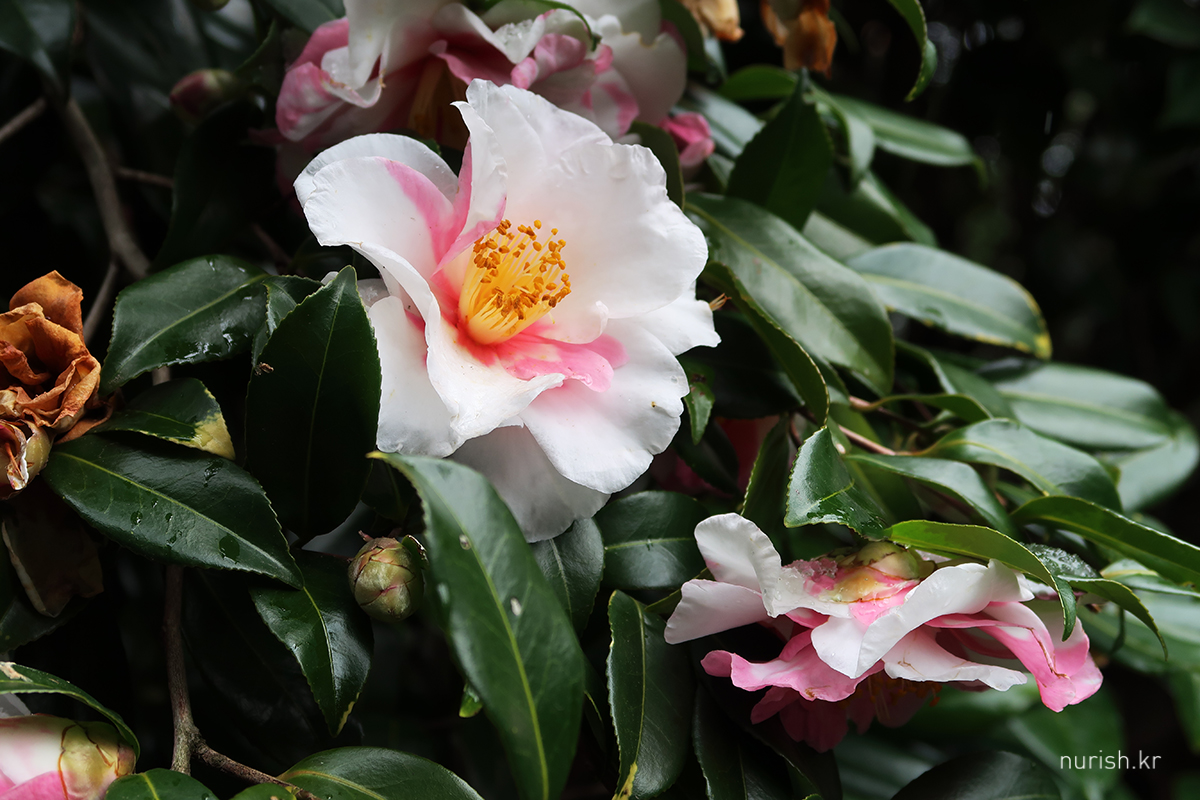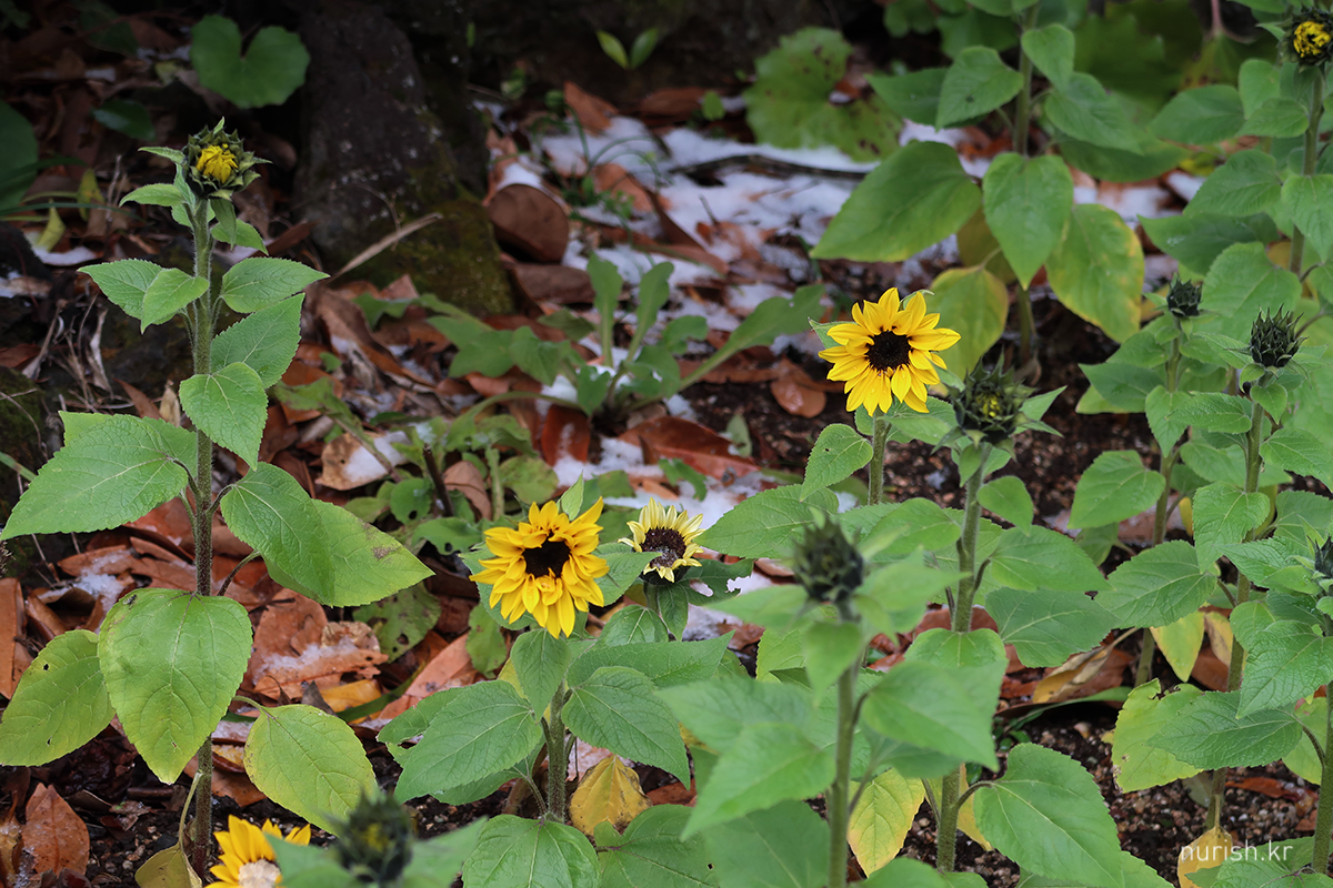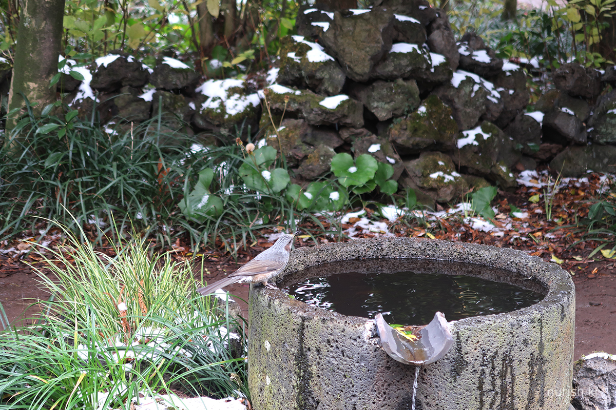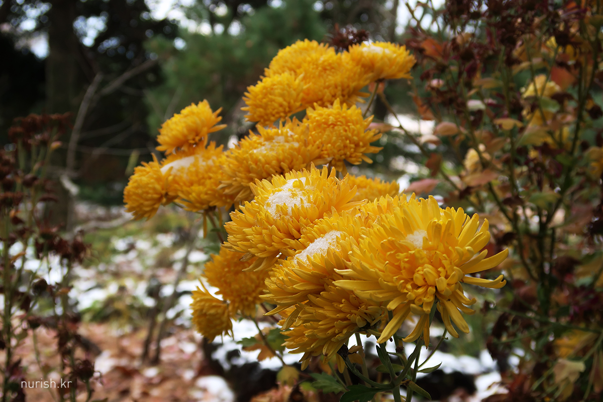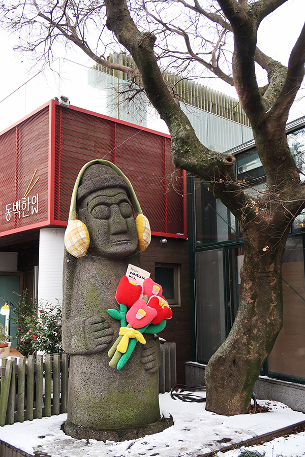 어제처럼 눈보라가 몰아치진 않아서 카멜리아힐에 왔다. 눈은 여전히 내리는 중.