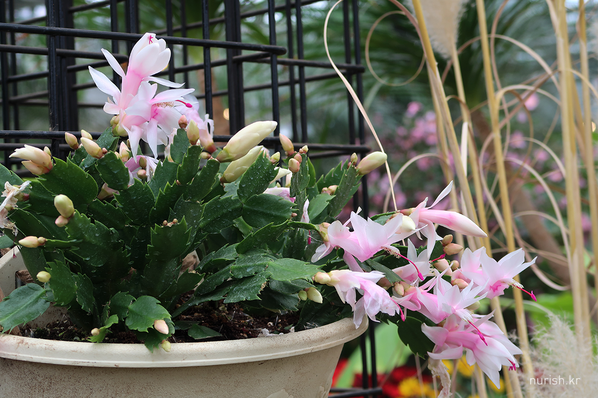 게발선인장에 이런 색깔 꽃이 피는 줄 몰랐다. 정말 곱다 고와.