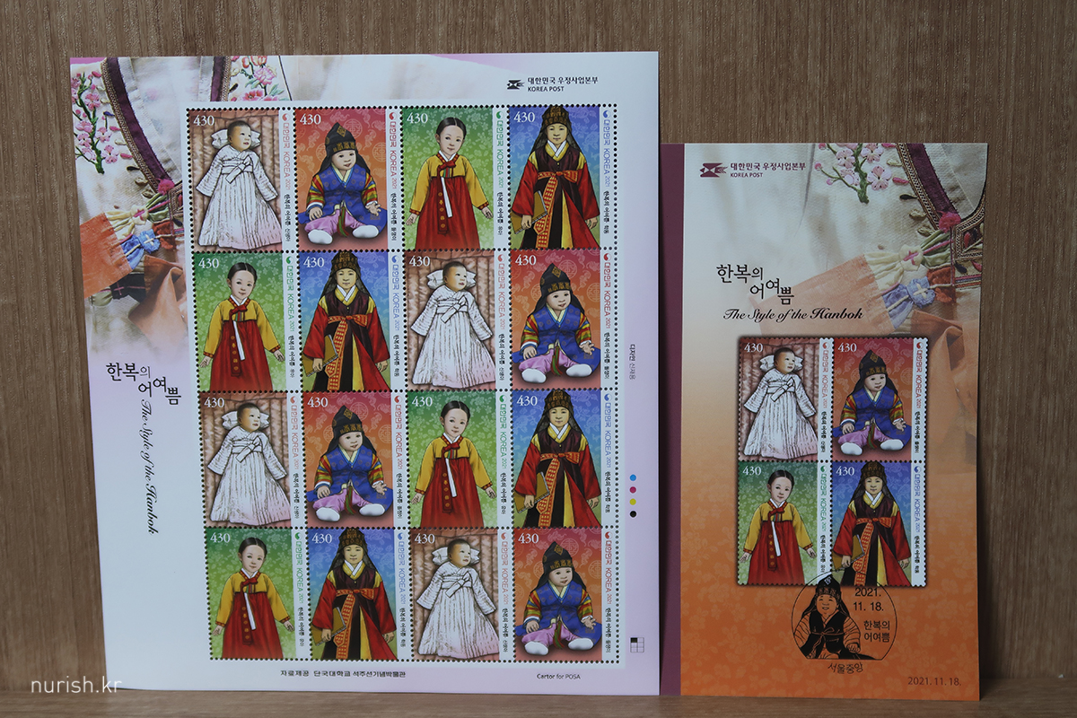 2021년 11월 18일 발행된 '한복의 어여쁨' - 신생아, 돌쟁이, 유아, 학동