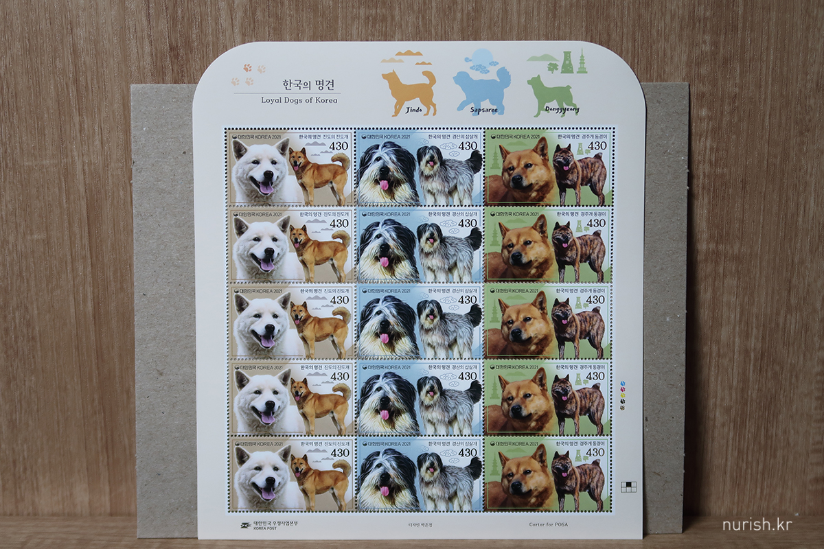 2021년 10월 29일 발행된 '한국의 명견' - 진도의 진도개, 경산의 삽살개, 경주개 동경이