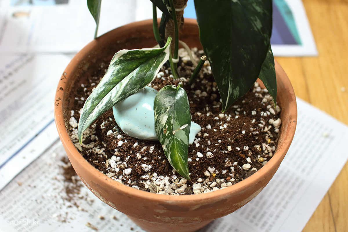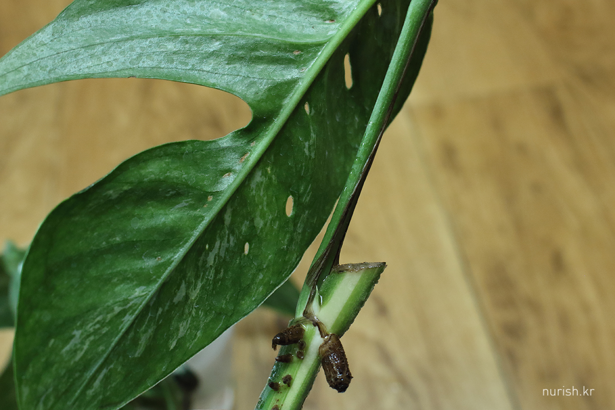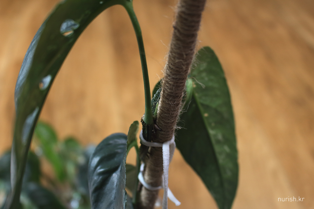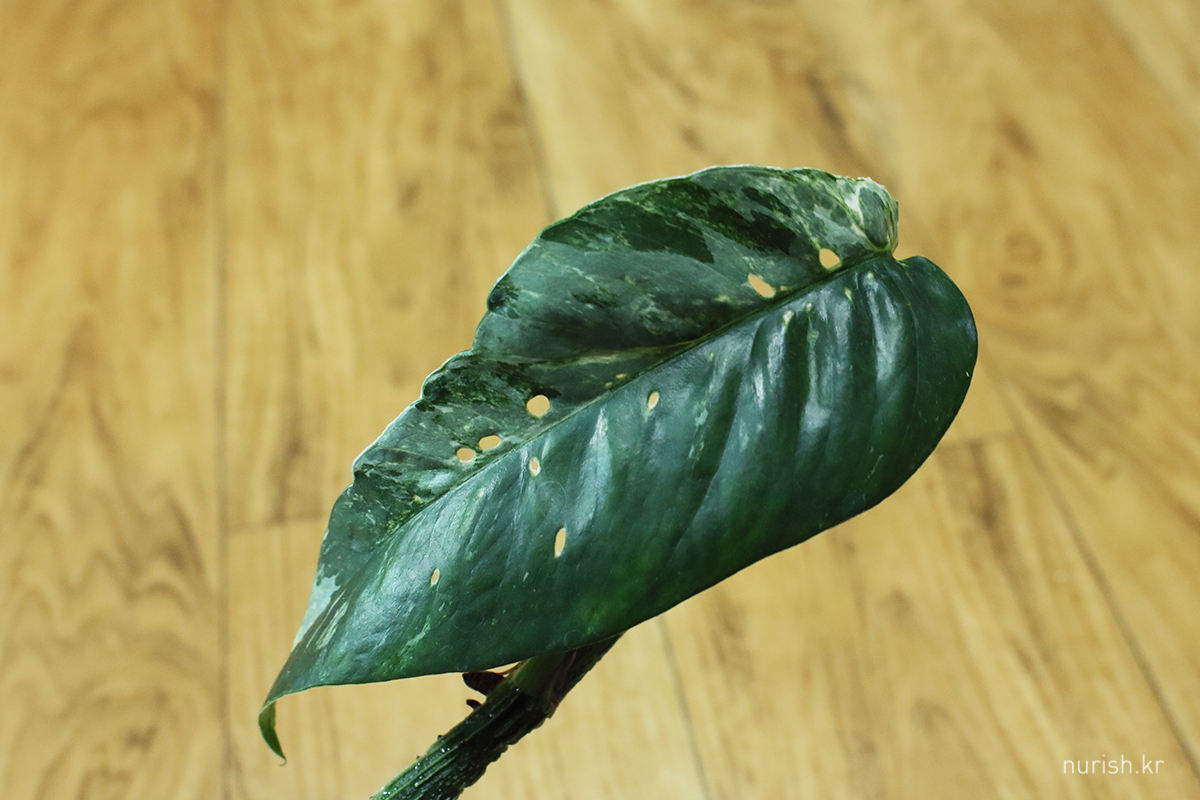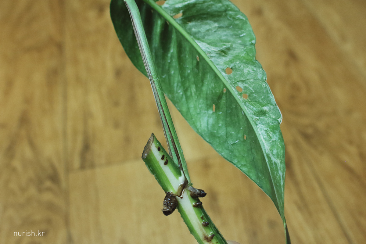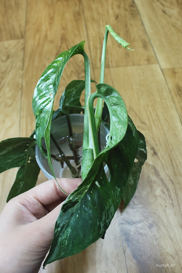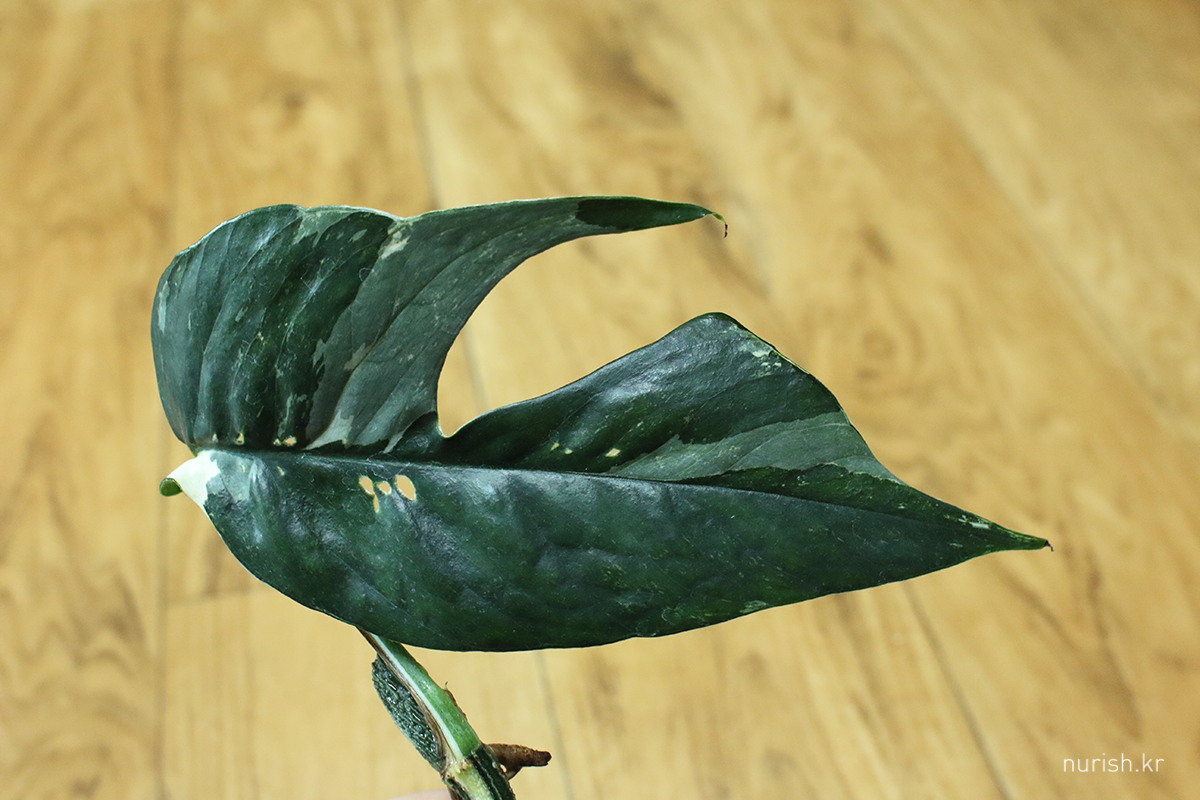 이렇게나 잘 자랐다. 구멍잎도 나고 찢잎도 나고 벌브도 두꺼워지고. 단지 아쉬운 건 무늬, 무늬, 무늬ㅠㅠ 초록인지 바리에가타인지 알 수가 없네. ㅋㅋㅋ 줄기가 지지대 넘어서면서 새잎은 동강 부러지고ㅠㅠㅋㅋ 지지대를 더 긴 걸로 바꿀까 어쩔까 하다가 무싱이랑 같이 과감하게 커팅 도전해 보기로 했다. 무늬 자극도 주고, 촉 여러 개 만들어서 풍성하게 키워야지.