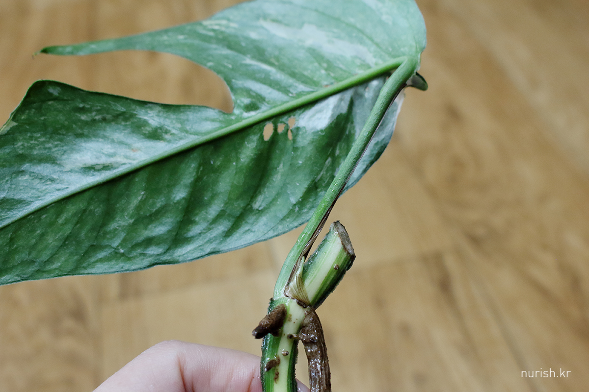 이렇게나 잘 자랐다. 구멍잎도 나고 찢잎도 나고 벌브도 두꺼워지고. 단지 아쉬운 건 무늬, 무늬, 무늬ㅠㅠ 초록인지 바리에가타인지 알 수가 없네. ㅋㅋㅋ 줄기가 지지대 넘어서면서 새잎은 동강 부러지고ㅠㅠㅋㅋ 지지대를 더 긴 걸로 바꿀까 어쩔까 하다가 무싱이랑 같이 과감하게 커팅 도전해 보기로 했다. 무늬 자극도 주고, 촉 여러 개 만들어서 풍성하게 키워야지.