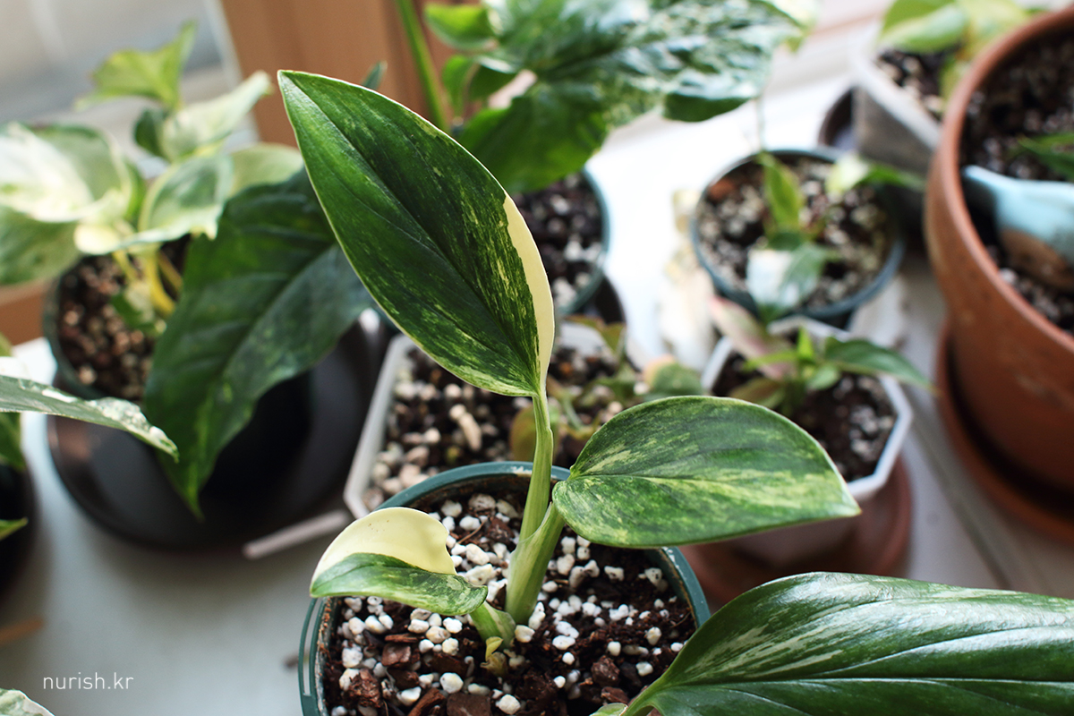 새순 잘 자라는 한편, 진딧물로 추정되는 벌레 때문에 에피바리도 이파리 뒷면이 다 엉망진창 ㅠㅠㅠ 저게 뭐람. 평일에 한의원 갔다가 늦게 집에 오는 바람에 크게 신경을 못 썼는데 그 사이에 에피프레넘 피나텀, 에피프레넘 아우리움(스킨답서스), 싱고니움 잎이 난리법석이다. 오늘 일단 비오킬 희석물로 샤워는 시켰는데 이래도 안되면 싹자바를 사든 농약을 사든 해야겠다. 곧 날 더 따뜻해지면 바질도 심어야 하는데 진딧물 안돼ㅠㅠㅠ