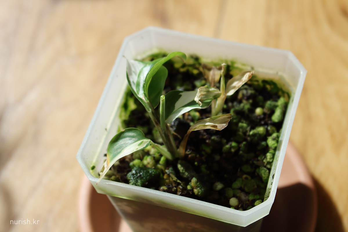 새잎 예쁘게 펼쳐진 무싱이 바텀! 이젠 초록이 많아도 그러려니 ㅋㅋ 흰 지분 녹아서 못생겨지는 것보다는 초록이 낫다. ㅠㅠ 그래도 다음 잎은 산반무늬 더 많이 묻히고 나와주면 좋겠지만 말이다. ㅋㅋㅋ