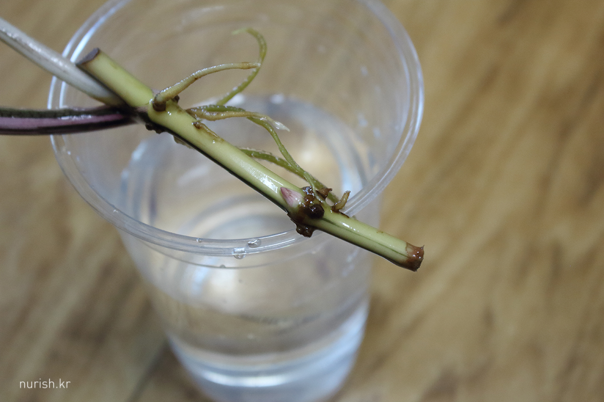 핳하하ㅏㅏ하하ㅏ핳... 하늘로 향하던 뿌리가 물 밖으로 나오려고 하기에 살살 방향 틀다가 분질러 먹었다. ㅠㅠ 뿌리 받기 리셋 ㅠㅠ