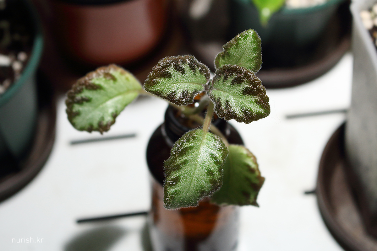 옥시바리 사면서 함께 나눔 받은 아이. 이름을 설명해 주셨는데, 낯선 이름이라 그대로 머릿속에서 휘발되어 버렸다. 집에 와서 다시 찾으려 했는데, 아직 어린 잎 상태라 이미지 검색도 잘 안 된다. 잎 모양새와 털 부숭부숭하게 난 게 에피스시아 종류가 아닐까 추측 중.
