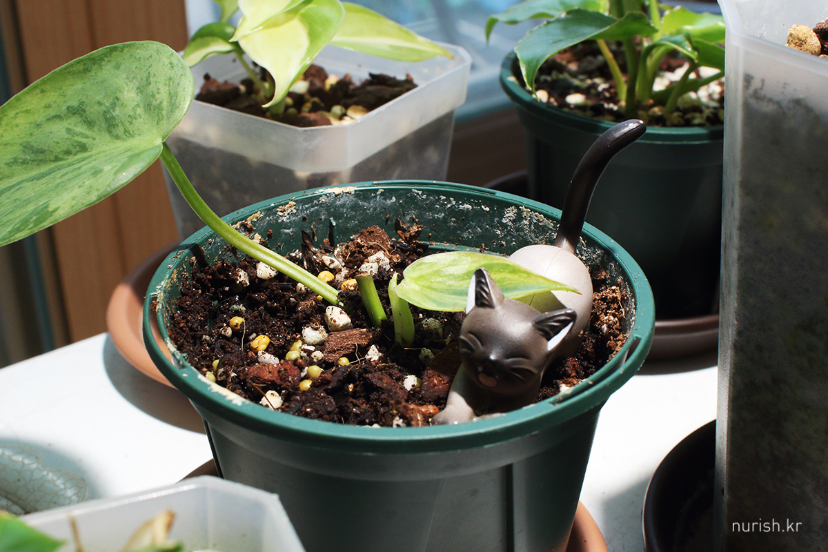 드디어 새순이 흙을 뚫고 지상으로 ㅋㅋㅋ 보통 잘 자라는 식물로 스킨답서스 추천하는데 우리집에서는 느려도 너무 느리다.