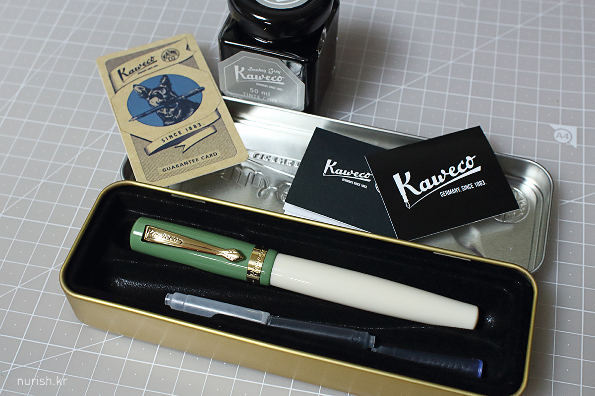 카웨코의 스튜던트 60s 스윙(올리브 색상, EF)과 잉크 '스모키 그레이' 색상.